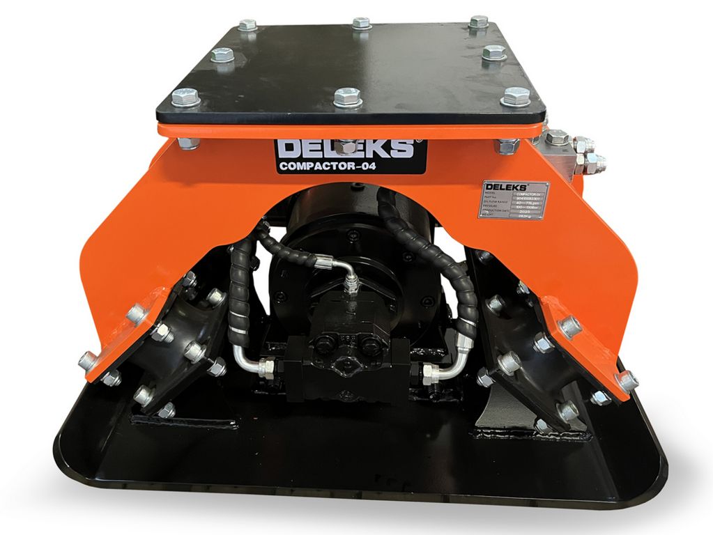 Der Compactor-04 Bodenverdichter von DELEKS ist eine leistungsstarke Rüttelplatte für Bagger von 4 bis 10 t.