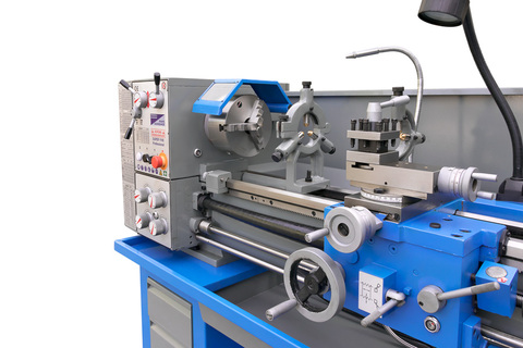 Präzisions-Vollgetriebe, Leit-, Zug-,Schaltspindel Drehmaschine, Bett und Getriebezahnräder gehärtet und geschliffen. Hauptspindel,- Kegelrollenlager und Keilleisten Plan/Oberschlitten nachstellbar. Camlockaufnahme C4, Oberschlitten 360° drehbar.Reitstockverstellung +/- 5 mm zum Kegeldrehen, Hohe Zerspanleistung, Din Abnahmeprotokoll, Betriebs und Ersatzteilliste.Ohne Ölfüllung.Standardausrüstung:UntergestellFußbremseKühlmitteleinrichtung Halogenlampe 3-Backenamerikaner 160 mm4-Backenamerikaner 200 mmPlanscheibe 250 mm2 LünettenTechnische Daten:Spitzenhöhe 165 mmSpitzenweite 1100 mmSpindelbohrung 38 mmSpindelkonus MK 5Aufnahmekonus Reitstock MK 3Spindeldrehzahl 65 bis 1810 U/MinGeschwindigkeiten 18Hauptmotorabgabeleistung 2 kW S6 ( 1,5 kW S1 )Gewicht 535 kg