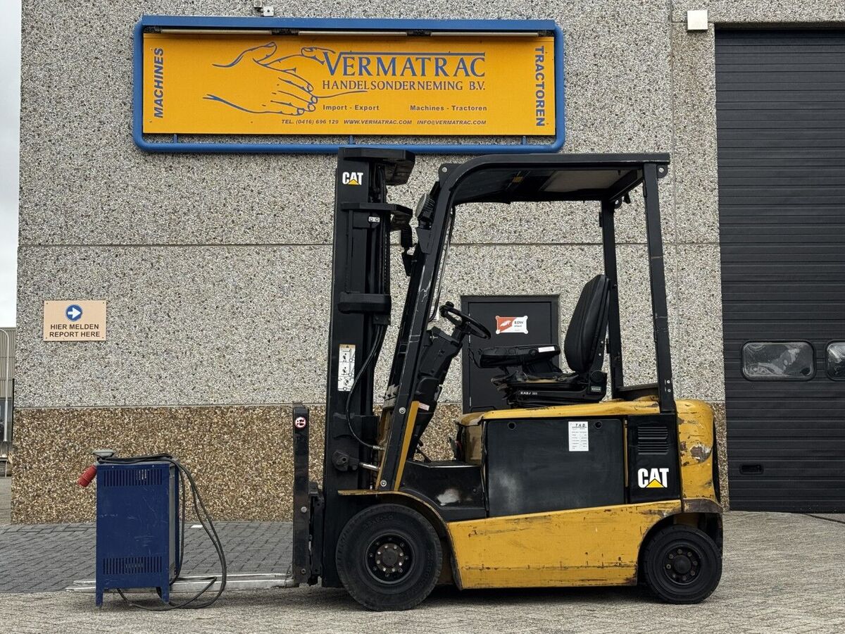 == More details (EN) == price: Price on request Used Caterpillar forklift 2009 electric controls with sideshift and fork adjustment.2500kg and 560cm lift height good battery. Complete with charger.We are open from Monday to Friday from 7.30 a.m. to 12 noon and from 1 p.m. to 5.30 p.m. If you would like to visit us outside office hours please contact us to make an appointmentDelivery to your location is no problem. We can also give assistance in organizing the relevant importation documents if necessary.We can also supply new and second hand accessories/parts such as tow bars tyres and wheel rims.We have made every effort to give you accurate and up-to-date information. Mistakes are however human and not always preventable. Model and specification mistakes can be made so we advise you to check these at all times