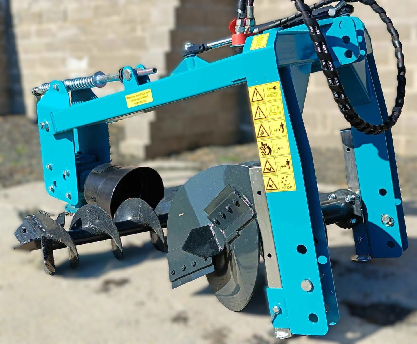 Der Bohrer mit hydraulischer Verschiebung ist eine Maschine, die an einem Dreipunktgestänge (TUZ) aufgehängt ist.