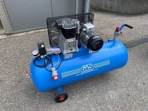 Luftkompressor Typ GS25/200/500T. Ansaugleistung 500Lt/min. Kesselinhalt 200Lt. Elektromotor 400V 3kW, Eurostecker 16A, Transporträder. Neumaschine!