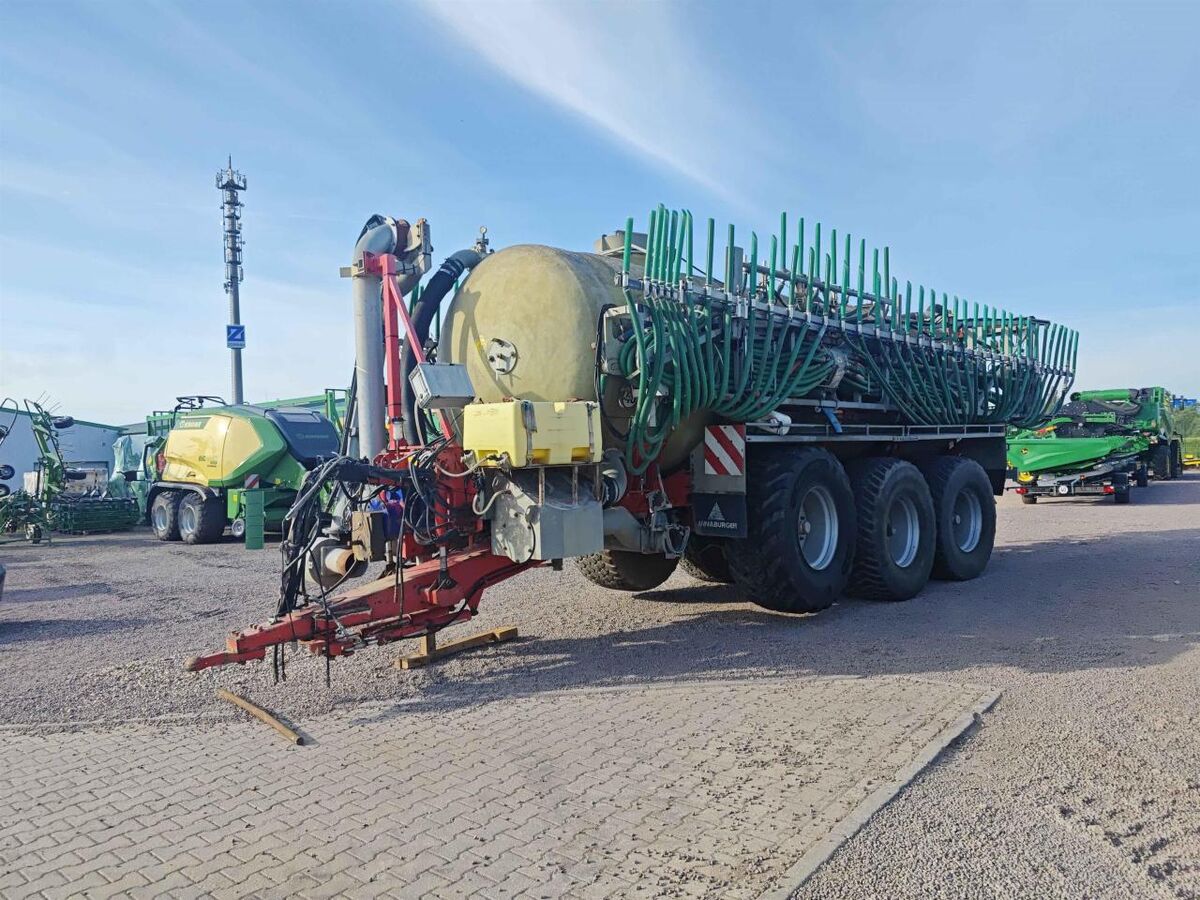 Bereifung (v): 650/65R30, Zustand-Bereifung (v): 20 %, Bereifung (h): 650/65R30, Zustand-Bereifung (h): 20 % ________ Tridem-Güllewagen, 33.000 kg zul. Ges.-Gew, Volumen: 27 cbm., Kreiselkolbenpumpe, Ansaugstutzen: vorne links, Druckluftbremse, Nachlauflenkung, Vogelsang Schleppschlauchverteiler, Baujahr: 2010, Arbeitsbreite: 30,00 m, K80 Untenanhängung, GFK Tank, Saugrüssel,