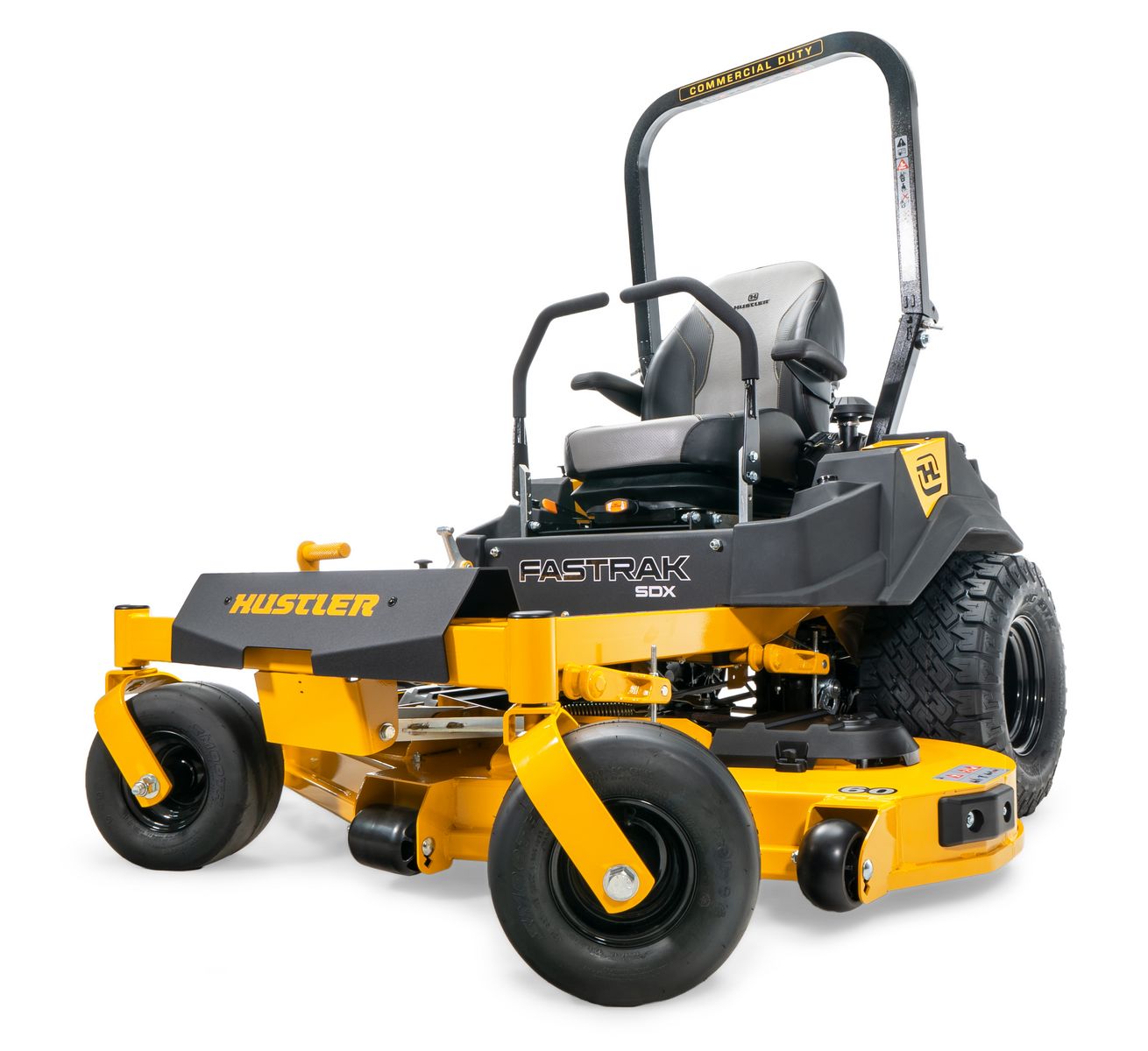 Der Hustler Fastrak SDX arbeitet kraftvoll und effizient und ist darauf ausgerichtet, große Rasenflächen mühelos und schnell zu schneiden. Dieser Premium Zero-Turn Mäher ist für anspruchsvolle Herausforderungen konzipiert. Mit dem Fastrak SDX mähen Sie wie ein Profi.