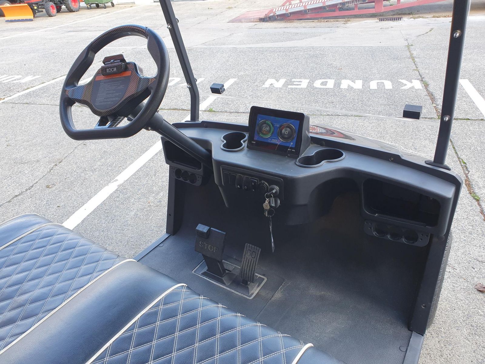 On-Board Ladegerät, Lichtanlage , Aluminiumrahmen, USB, 6x8 V Trojan T875 Batterien 1 Jahr alt, Zentalbefüllanlage, Premiumsitze schwarz, Classic Golflenkrad, 10" Alufelgen, 7" Digitaltachometer, Cargobox 110x60 cm.