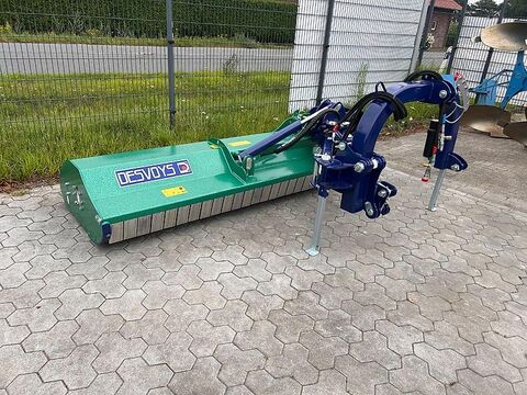 Seitenmulcher Desvoys Iris 225 Neumaschine Baujahr 2025 Ausstattung: - Anhängung Kat.2 geschweißt, ein einziehbarer Lenker - Außenliegendes Getriebe für mehr Seitenverschiebung, - Arbeitsbreite 225cm - Gesamtbreite 270cm - Gewicht 950kg - Schlepperleistung von 80-200 PS - Sternrohr Gelenkwelle 1 3/8" - Zapfwellendrehzahl 540 U/min - Getriebe mit eingebautem Freilauf - Riemenantrieb über 4 Riemen - Gegenmesser unten und oben - Rotor-Durchmesser Ø 168mm, Schnitt-Durchmesser Ø 415 mm, 20 Hammerschlegel B2 - Stützwalze mit wasserdichten abnehmbaren Endstücken, doppelte Kugellager für lange Lebensdauer - Gehäuse geschlossen 6mm - Verschraubte Verschleißkufen aus Hardox - Verzinkte Spritzschutzklappen vorn, Gummischutzlappen hinten - 2 Arme 120 x 60 mm - Verschiebungszylinder DW (2113 - 3280 mm von Schleppermitte nach rechts) - Schrägstellungszylinder DW (90° bis - 50°)