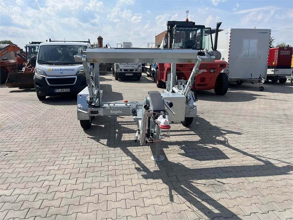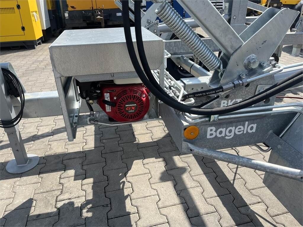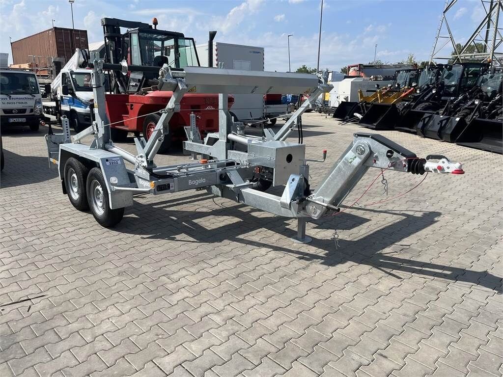 Bagela Kabeltrommelwagen BKT 27 Produktinformationen "Kabeltrommelwagen BKT 27 Bagela höhenverstellbare Zugdeichsel" Hydraulikmotor 4 kW Honda Beladung: über 2 Hydraulikzylinder mittels Handpumpe bewegtem Kippladerahmen Hubarme: Teleskopschieberohre (für LWL-Leerrohrtrommeln, Container, Rohrbundhaspeln) Fahrgestell: Tandemachse, höhenverstellbare Zugdeichsel mit Kugelkopfkupplung, Auflauf- u. Feststellbremse, Rückfahrautomatik, Beleuchtung 12 Volt, Versorgungskabel mit 13-poligem Stecker. Das Fahrzeug wird feuerverzinkt und nach § 13 EG-FGV (TÜV) gemäß StVZO abgenommen Das Gewicht der Sonderausstattung mindert die Nutzlast entsprechend: incl. DIN-Zugöse 40 mm Durchmesser. Gewicht: 5,25 kg Trommeldurchmesser: 850 - 2800 mm max. Rohrbunddurchm.: 3700 mm Maße L x B x H: 4950 x 2550 x 1900 mm Nutzlast: 2600 kg Gesamtgewicht: 3500 kg Lichte Ladeweite: 1720 mm Reifengröße: 195R14C Baujahr: 2024 Gewicht: 3500 kg Nutzlast: 2600 kg