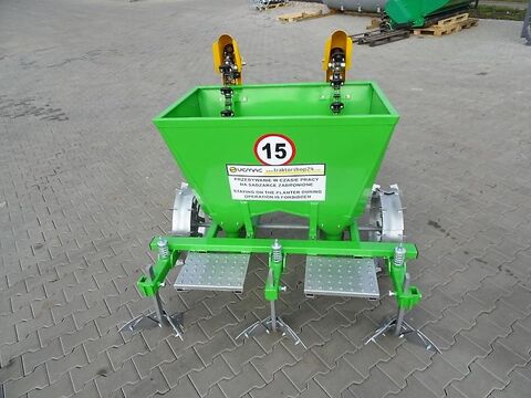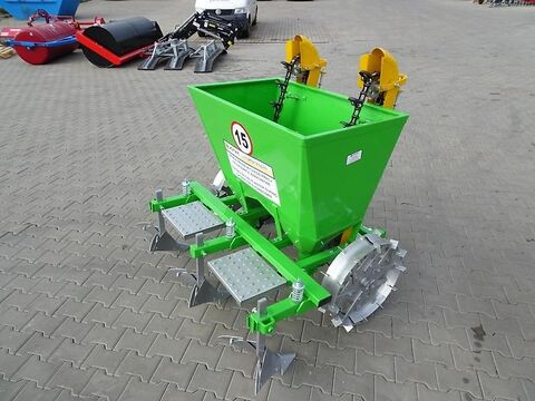 Besuchen Sie auch unseren Online-Shop www.traktorshop24. com Kartoffellegemaschine Bomet zweireihig (auch 1-reihig lieferbar) 62,5cm - 67,5cm (auch mit 70-75cm lieferbar) - Neugerät - 2-reihig - ab 30 PS - Kat.1 Aufnahme - Vorratsbehälter bis 180 kg Kartoffeln Die Kartoffellegemaschine ist für Traktoren ab 30 PS mit Kat. 1 geeignet. Diese Legemaschine ermöglicht ein leichtes Pflanzen der Kartoffeln. Mit nur einem Arbeitsgang wird eine Furche gepflügt, die Kartoffeln gelegt und zuletzt auch angehäufelt. Die Kartoffeln werden einzeln über die 2 Stück Förderketten aus dem Vorratsbehälter in die Erde gelegt. Die Kartoffellegemaschine ist massiv verbaut und ermöglicht eine gute Kartoffelüberdeckung durch das kombinierte Legen und Häufeln. Technische Daten: - 2-reihig - Reihenabstand 62,5cm - 67,5cm - Stahl-Laufräder (gegen Aufpreis auch mit Gummiräder lieferbar) - mit Dammformung - mit Häufler - mit Kettenrüttler - gehärtete Arbeitselemente - Füllmenge ca. 180kg - Gewicht: 200 kg - Drei-Punkt-Aufnahme Kat. 1 / 2 - Tiefe: 125cm, Breite: 160cm, Höhe: 140cm - Antrieb der Förderkette erfolgt über 2 Laufräder - kombiniertes Legen und Häufeln - Legeabstand ist variabel innerhalb der Reihe: 29cm, 32cm, 35cm (durch Änderung des Durchmessers der Räder) - auch mit Düngemittelstreuer, großem Korb und Gummirädern lieferbar! Optionen: Gummiräder: 230,00 Euro inkl. 19% MwSt. Gummieinlagen: je Stück 50,00 Euro inkl. 19 % MwSt. Gummiabdeckungen für kleine Kartoffeln: 250,00 Euro inkl. 19% MwSt. Lieferung Deutschlandweit möglich für 149,00 Euro inkl. 19% MwSt. Sie suchen dazu den passenden Traktor? Wir haben ständig unterschiedliche Traktoren auf Lager, Neu und auch gebraucht! Wir haben auch Mulcher, Mähwerke, Kreiselmähwerke, Bodenumkehrfräsen, Frrontlader, Heckbagger, Pflüge, Transportboxen, Palettengabeln, Anhänger... viele andere Mulchertypen lieferbar wie z.B. hydraulisch verschiebbare, Böschungsmulcher, Forstmulcher usw. Sie suchen dazu den passenden Traktor? Wir haben ständig unterschiedliche Traktoren auf Lager, Neu und auch gebraucht! Wir haben auch Mulcher, Mähwerke, Kreiselmähwerke, Bodenumkehrfräsen, Frrontlader, Heckbagger, Pflüge, Transportboxen, Palettengabeln, Anhänger... VEMAC GmbH Lange Göhren 7b 39171 Osterweddingen / Magdeburg Tel. 039205 - 43 46 10 Fax. 039205 - 43 46 11 www.traktorshop24. com