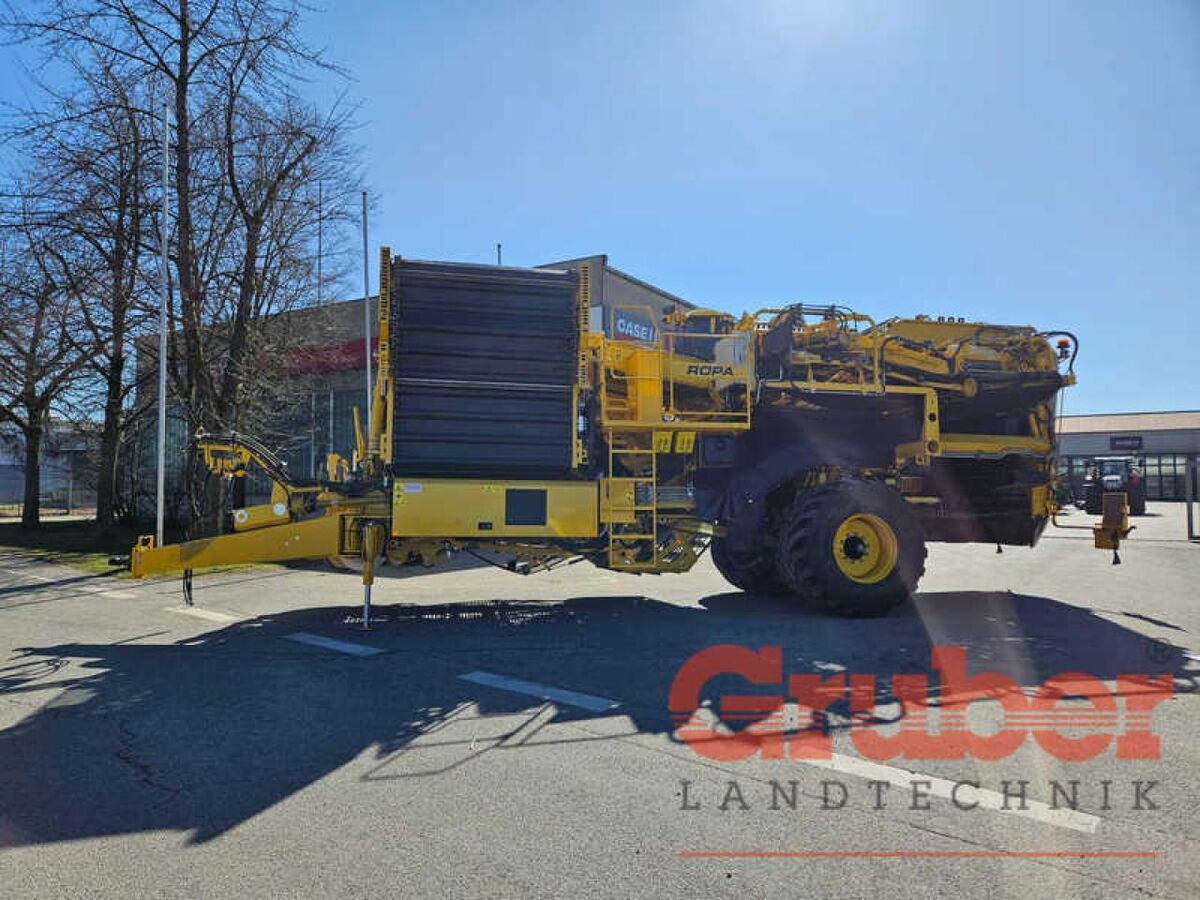 Bereifung (v): 850/50R30.5, Zustand-Bereifung (v): 90 % ________ Ansprechpartner: Roland Huber 0172/3833335 gebraucht, Grundmaschine ROPA Keiler II Trennung über Igel 1 mit Dreifachableitwalzen und Igel 2 und 3 in V-Profil Ausführung, Igel 4 mit H-Profil und 4-fach UFK (1. und 2. Fingerreihe versetzt), Geschwindigkeit unabhängig voneinander einstellbar, mechanisch und hydraulische Vorbereitung Schwadaufnahme (Wechselvorderbau - Schnellwechselsystem), Load-Sensing Eigenhydraulikanlage mit vollyhdraulischem Antrieb aller Siebketten und Igel, hydraulisch angetriebener und in Geschwindigkeit stufenlos verstellbarer Schüttler, elektrische Höhenverstellung der Ableitwalzenpakete 1-3, ISOBUS-Terminal auf Traktor und auf Maschine zur Bedienung aller Funktionen, 2x Bedienelemente mit je 2 Joysticks zur Bedienung der Hauptfunktionen, Anhängung / Antrieb / Fahrwerk / Rahmen Anhängung Kugelkopfkupplung K80, Weitwinkelgelenkwelle mit Zapfwellendrehzahl: 1.000 U/min., automatische Achsmittenfindung, Teleskopachse 3 m bis 3,5 m ausschiebbar mit Neigungsausgleich (Achse), hydraulisch inkl. Automatik, Bremse pneumatisch (2-Kreis), Bereifung (2 Stück), Staufach unter Verlesestand, Aufnahme Dammaufnahme, automatische Dammmittenfindung, hydraulische Dammdruckentlastung, stufenlos vom Traktor aus einstellbar, hydraulische Rodetiefenverstellung in Verbindung mit hydraulischer Dammdruckregelung, Dammaufnahme mit Scheibensech und Dammrolle (75 cm), hydraulische Vorbereitung für hydraulisch angetriebenes Scheibensech / Schwadaufnahme mit Rodewelle udn Deckband, Dammrolle, normale Ausführung (flach / bauchig), Zweiblattschar gekantet (für 2 Reihen) 75 cm / 90 cm, Siebkanal Siebkette 1, Teilung 40 mm (lichte Weite 29 mm), Edelstahl-Bleche im Siebkanal 1, Siebkette 2, Teilung 36 mm (lichte Weite 27 mm), Schüttler hydraulisch und stufenlos: Verstellung der Intensität in 20 Schritten, Trennung Igel 1 mit V-Profil Teilung 40 mm, Ableitwalze 1; unterste Walze glatt, Igel 2 mit V-Profil Teilung 40 mm, Ableitwalze 2; unterste Walze glatt, Igel 3 mit V-Profil Teilung 40 mm, Ableitwalze 3; unterste Walze glatt, Igel 4 mit H-Profil Teilung 40 mm auf Rundstab, Neigungsverstellung Igel 1 und 2 hydraulisch inkl. Automatik, UFK-Höhenverstellung elektrisch von Traktor und Verleseband aus, UFK 4-fach, je 2 Reihen getrennt angetrieben, Geschwindigkeit verstellbar, Krauttrennung 7 Reihen Krautrückhaltefedern elektrisch verstellbar, Krautkette, weitmaschig, Teilung 250 mm, mit 6 herausnehmbaren Einziehriemen, 3 Abreißstangen zur Unterstützung der Trennung von Kartoffel und Kraut, Schmutzaustrageband, Verlesen Beimengenband durchgehend 350 mm und separat vom Verleseband in Geschwindigkeit stufenlos einstellbar, Beimengenrückführung in Siebkanal mit Umschaltklappe, Höhen verstellbare Podeste (2 Stück), Bunker Bunker in Standard mit Tuchboden und stufenlosem Antrieb, Bunkerbefüllschlitten NICHT für Überladeelevator!, automatische Fallhöhenanpassung und Bunkervorschub, enthält Bunkerbefüllschlitten, Elektronik Bedieneinheit am Verlesetisch Premium - elektrische Geschwindigkeitsverstellung der Trennaggregate sowie Verstellung der Rodefunktionen über Terminal, ISOBUS-Steuerung bestehend aus je 1x Traktor- und 1x Verleseterminal, 2x Bedienelemente mit je 2 Kreuzhebel für Rode- und Bunkerfunktionen, ROPA 8" Touch-Terminal, Software Programmtasten zum Speichern von 6 Rodeprogrammen, ha-Zähler über Steuerung, Überlastwarnung Hydraulikanlage, Überlastautomatik (Blockadeerkennung), manuelle Bänderansteuerung als Reinigungs- oder Serviceprogramm für Siebketten und Igelbänder anwendbar, mit Bedienungsanleitung und komplettem Normalzubehör * Zentralschmieranlage (Deichsel und Fahrwerk) * Krauteinzugsrollen in breiter Ausführung (75 mm, d=405 mm, max. Maulweite zw. Scheibensech 577 mm) - nur bei 75 cm Dammabstand * Reinigungswalze Siebkette 1 (ausschwenkbar) * Übergangsverschluss zwischen Siebkette 1 und 2; Krautkette TG> 250 mm; kleinfallende Ware, extrem niedrige Siebkettengeschwindigkeiten * Neigungsverstellung Igel 4 hydraulisch * Abreisstange hinter der Achse, zusätzlich * Beimengenband reservierbar (Achtung: Nicht möglich in Verbindung mit Kartoffelquetsche!) * Bunkerknick hydraulisch absenkbar * Videosystem bestehend aus 1x 7" TFT-Monitor und Kabelset inkl. 4 mögliche Kameraanschlüsse und 4 Kameras inklusive Positionen der Kameras: (Bitte entsprechend die Reihenfolge eintragen, wie die Kameras auf die Bildschirme angeschlossen werden sollen!) Kameraanschluss 1. 2. 3. 4. 1. Bildschirm |__1_|_3__|_4__|_6__| 2. Bildschirm |___|___|___|___| Traktorterminal |___|___| Positionen: 1. Rückfahrkamera, 3. Kamera Verleseband, 4. Kamera Igel 1 und 2 6. Kamera Bunkerauslauf bei Standardbunker * 1. Arbeitsscheinwerfer LED Siebkanal 1 * 2. Arbeitsscheinwerfer LED Verlesetisch - NICHT notwendig bei Beleuchtung Wetterschutzdach! * 3. Arbeitsscheinwerfer LED Igel 1 und 2 * 4. Arbeitsscheinwerfer LED Rückfahrkamera * 5. Arbeitsscheinwerfer LED Bunkerauslauf Standardbunker * Rundumleuchte * Ausstattung nach EU-Vorgaben (CoC-konform) * Fahrgeschwindigkeitsabhängige Bänderregelung (Siebkette 1 und 2, sowie Igelband 1) inkl. lastabhängige Steuerung Siebkette 2 und Igelband 1 Erfassungsnummer: 72049