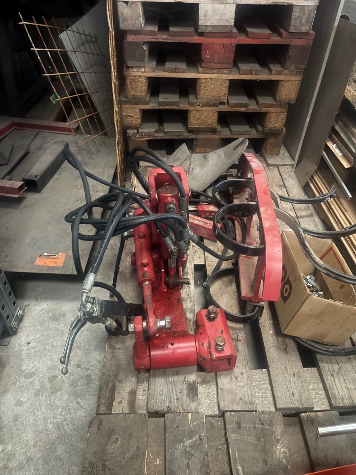 Klappaushebung mit hydraulischer Neigung für Zwischenachsanbau. Sperrblöcke für Hubzylinder u. Neigungszylinder und Absperrhähne. Halter mit 3 Federzinken ( passend auf die Klappaushebung )