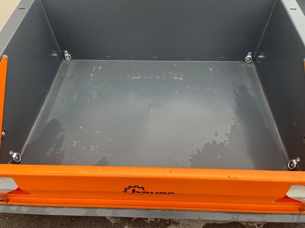 Hydraulische Kippschaufel Hauer Typ KM 1900Schwenkklappe, Montage zum Verlängern der Plattform möglichBreite aussen 1900mmBreite innen 1680mmTiefe innen 1250mmNutzlast 4500kgGewicht 523kgGeeignet zum Verladen von Motormäher mit 1,60 Meter Balken, Gewicht:523
