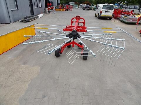 Besuchen Sie auch unseren Online-Shop www.traktorshop24. com Kreiselheuschwader Heuschwader 4,4m Neugerät Technische Daten: - Arbeitsbreite 4,4 m - inklusive Lenkbock (läuft also in den Kurven mit und ist nich starr) - 11 Zinkenarme - je Arm 4 Zinkensätze mit jeweils 2 Zinken (also pro Arm insgesamt 8 Zinken) - durch Stecksystem sind die Zinken für den Transport einfach und bequem für den Transport klappbar - Anpassung der Rechenhöhe durch eine Kurbel problemlos möglich - Schwadrechen ist ebenfalls höhenverstellba - Schwadrechen links und rechts montierbar - inklusive klappbaren Schutzbügeln - inklusive wartungsfreiem Ölbadgetriebe - Gewicht: ca. 420 kg - Doppelfahrwerk-Tadem - für 3-Punkt-Anbau Kat.1 und 2 - Fahrwerk mit Luftbereifung - Antrieb vom Schlepper mit 540 U/min auch in Arbeitsbreite 3,5 m lieferbar (3.290,00 € inkl. 19%) Wir haben auch Mulcher, Mähwerke, Kreiselmähwerke, Bodenumkehrfräsen, Frontlader, Heckbagger, Pflüge, Transportboxen, Palettengabeln, Anhänger, u.v.m. VEMAC GmbH Lange Göhren 7b 39171 Osterweddingen Tel. 039205 - 43 46 10 Fax: 039205 - 43 46 11 www.traktorshop24. com