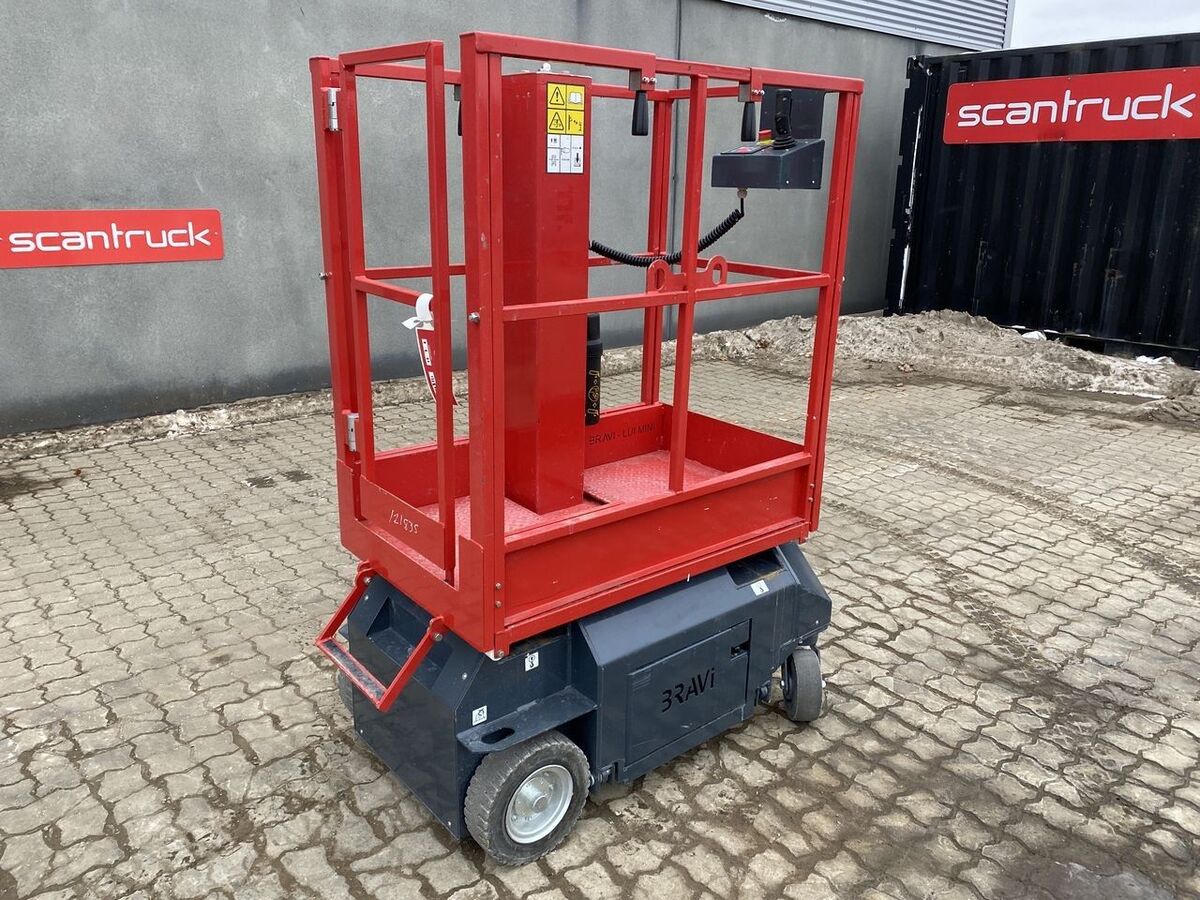 == More details (EN) == Classification: B Steering: 2 wheel steering Wheel front type: Non-marking tires Wheel rear type: Non-marking tires Lifting speed up/down (sek.): 16/21 Platform height: 2900 mm Platform width: 630 mm Platform length: 1036 mm Platform extension: 660 mm Free height: 87 mm AGM vedligeholdelsfrie batterier