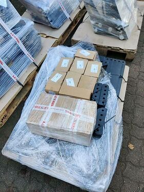 Die universellen Anbauplatten werden seitlich an den Schlepper geschraubt (Löcher müssen individuell gebohrt werden) und dann wird der Frontkraftheber an die Anbauplatten geschraubt.