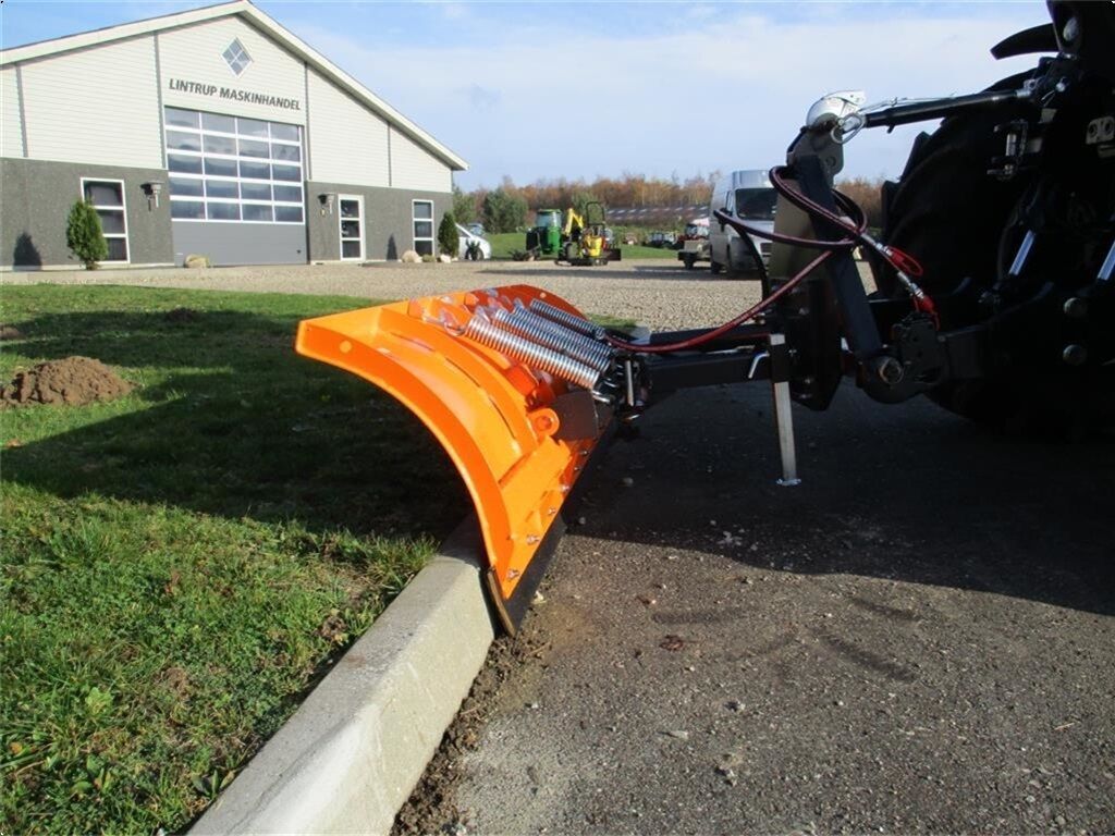 Fabriksny Limas 180 MiniSHL sneplov. Den har hydraulisk skråstilling med 1 stk. hydraulikcylinder. Den er 1,8m bred og ved skråstilling skærer den 1,55m fri. Skjoldet er 65cm højt og den er med gummiskær der er vendbart. SHL er monteret med fjedersikring af skæret