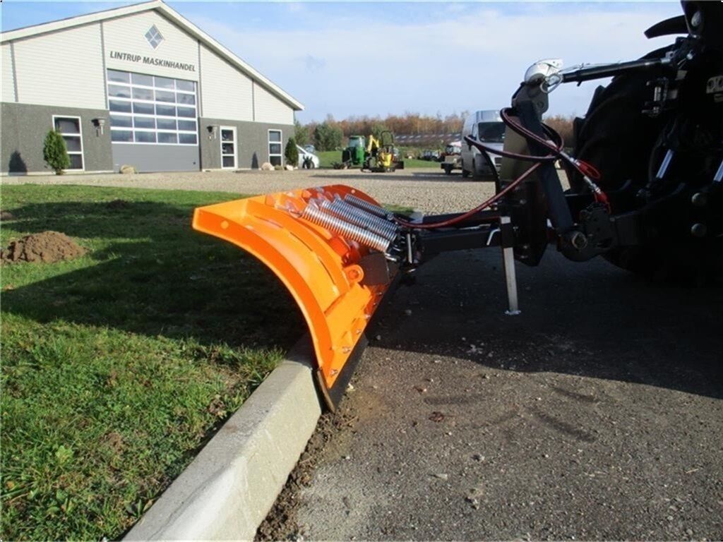 Fabriksny Limas 180 MiniSHL sneplov. Den har hydraulisk skråstilling med 1 stk. hydraulikcylinder. Den er 1,8m bred og ved skråstilling skærer den 1,55m fri. Skjoldet er 65cm højt og den er med gummiskær der er vendbart. SHL er monteret med fjedersikring af skæret