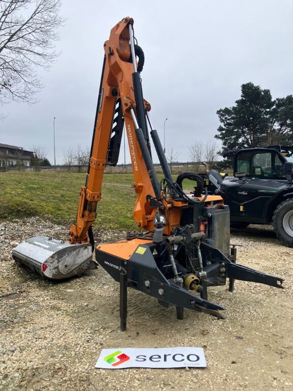 Noremat Magistra 95T- Portée latérale 9.5m (double-téléscope)- Entraînement par prise de force 540 ou 1000 tr/min- Pivot machine à gauche de l'axe du tracteur - Angle de balayage: 90°- Effacement du bras à double-pression- Amortisseur de recul- Suspension oléopneumatique du bras (commande électrique)- Hydraulique indépendant du tracteur- Circuit fermé- Pompe à pistons- Pompe mouvement corps fonte (29cc)- Puissance au rotor 73cv (540 tr/min)- Puissance au rotor 84cv (1000 tr/min)- Réservoir 85L- Refroidisseur de série- Attelage semi automatique des outils- Position flottante de la tête de coupe- Double sens de rotation des outils- Commandes hydrauliques assistées basse pression- Béquilles de dépose réglables- Feux de signalisation arrière- Poids: 2050 kgCommandes- Electrique monolevier Digitale 3 mvt proportionnelsGroupe de broyage- Unibroyeur 1250 avec rotor universel (Fixaspeed)- Largeur de coupe: 1.25m- Largeur hors tout: 1.43m- Couteaux YOptions- Rappel automatique du bras- Sustentation électro, Gewicht:2400, Seriennummer:S021