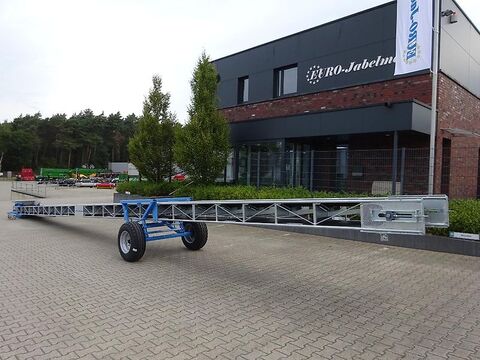 EURO-Jabelmann Muldenband V 16650 Muldenförderband mit Gummigurt (Glattgurt), Gitterrohrrahmen feuerverzinkt, gummierter Einfülltrichter, Aufsteck-Getriebemotor, Höhenverstellung über Winde, Fahrgestell mit Luftbereifung 10.0/75-15,3, Bandlänge 16000 mm, Gurtbreite 650 mm Motor 3,0 kw / 400 Volt, Bandgeschwindigkeit 75 m/min. Bandgeschwindigkeit 75 m/min. Maximale Überladehöhe ca. 7900 mm Eigene Herstellung, Gitterrohrrahmen feuerverzinkt Einschl. Zubehör: Aussengurtabstreifer für Muldenband 650 mm - Nur für Glattgurtbänder möglich - Innengurtabstreifer komplett Frequenzregler für stufenlose Geschwindigkeitsverstellung Anlieferung gegen Mehrpreis möglich.