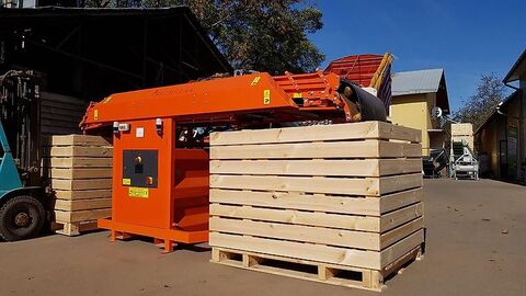 An automatic product layer thickness sensor monitors the current fill level of the pallet boxes, allowing for precise material dosing. Machine control is managed via a touch panel, which facilitates