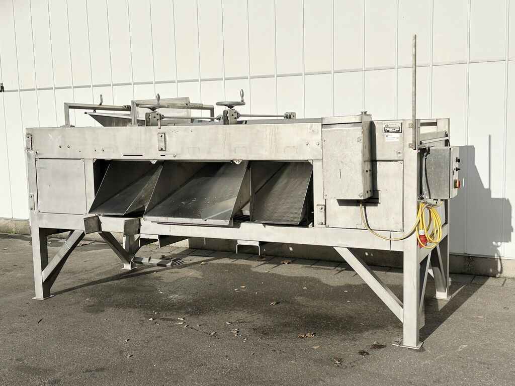 3 sortierungen90 cm. SortierbreiteDurchgang max. 11 mm. up to 35 mm.FrequenzgeregeltMit elektrischem Öltopf zur Schmierung der KetteEs ist eine Sprühleitung vorhanden, um zum Beispiel das Produkt aus den Auslaufbehältern zu besprühen.Oben in der Wanne befinden sich Löcher, siehe Fotos.Diese Sortiermaschine wurde für Kirschen in der Gemüseindustrie verwendet.Weitere Informationen oder eine vollständige Angebot? Fragen Sie