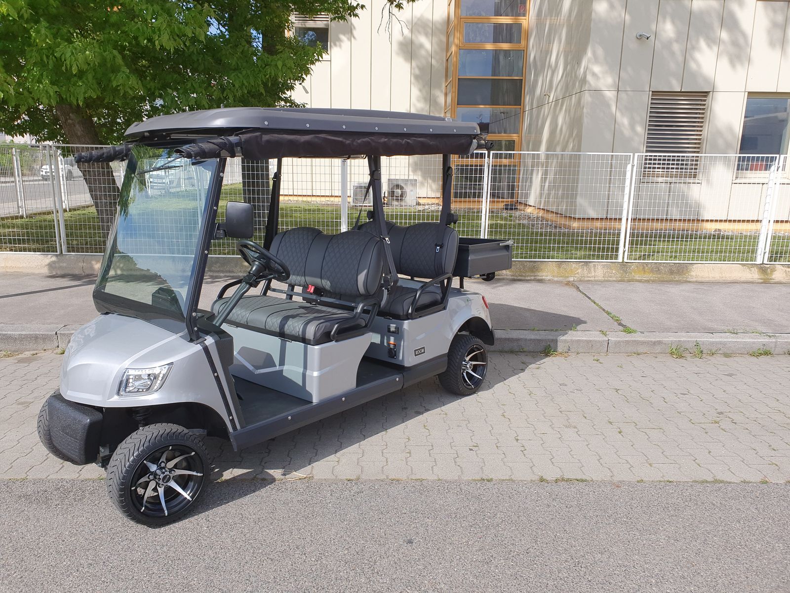 ICOCAR Shuttle 4 Cargo 3.0 Deluxe Vorführfahrzeug. DAS Transportcar für Hotelliere, Camping oder Freizeit. Perfekte Technik und überragende Ausstattung machen dieses Transportcar zum trendigen Begleiter. Das Car verfügt über einen starken, wartungsfreien 6,8 PS Wechselstrommotor mit im Fahrzeug integrierten Ladegerät, korrosionsfreien Aluminiumrahmen, Metalliclackierung, wartungsfreie 180Ah AGM-Batterien, selbstnachstellende Zahnstangenlenkung und hydraulische 4-Rad Bremsen, Windschutzscheibe aus Sicherheitsglas mit Scheibenwischer, sowie Sonnen/Regendach über alle Sitzreihen sowie eine Ladefläche 110 x 60 cm mit ca. 80 kg. Traglast. Zum inkludierterten DeLuxe Paket gehören die komplette