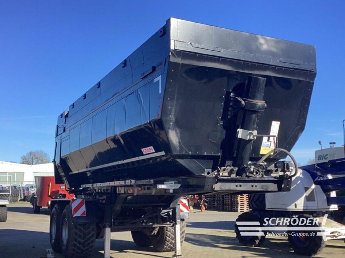 Stahl-Halbrundmulde,, in isolierter Ausführung, Gewichte: Zul. Gesamtgewicht 32.000 kg, Achslast 2x 9.000 kg, Sattellast ca. 14.000 kg, Abmessungen, Ladelänge ca. 7.200 mm, Ladebreite ca. 2.350 mm, Muldenhöhe ca. 1.600 mm, Muldeninhalt ca. 24,6 m³, Durchschwenkradius ca. 2.400 mm, Lackierung / Plane, Fahrgestell : tiefschwarz, RAL 9005, Achsen : schwarz (KTL-Beschichtung), Radnaben : schwarz (KTL-Beschichtung, Mulde : Tiefschwarz, RAL 9005, Plane: schwarz (905) ähnlich RAL 9005, Rahmen:, in bewährter KEMPF-Schweißkonstruktion unter Verwendung hochwertiger Feinkornstähle, sandgestrahlt, hergestellt. Fahrgestell in Kastenbauweise. Alle Anbauteile in feuerverzinkter Ausführung., Achsaggregat:, SAF-Achsaggregat Typ INTRADISC plus Integral in Off-Road - Ausführung, mit Scheibenbremsen,, Scheibendurchmesser ca. 430 mm (große Scheibe), mit leichtem Bremssattel, lange Radbolzen, ET 120., Fahrwerk laservermessen (Spur und Sturz werden vermessen um den Reifenverschleiß und den, Kraftstoffverbrauch zu minimieren)., Luftfederbälge:, Luftfederaggregat mit großen Luftfederbälgen 350 mm., Liftachse:, ohne., Scheibenräder:, 11.75 x 22.5, ALCOA - Alu-Räder, Dura-Bright, EVO, ET 120, Bohrung 26 mm., Bereifung:, 385/65 R 22.5,, Federung:, mit Hub- und Senkeinrichtung (ein Drehschieberventil). Mit Schnellentlüftung, Federung:, Mit abnehmbaren Belademanometer, vorne links über dem Fahrgestellrahmen angebracht., Bremsanlage:, Mit elektronischem Bremssystem (EBS), Fabrikat Knorr, mit Feststellbremse über Federspeicherzylinder, RSP-Programmierung (Roll-Stability-Program). ABS in 4-Kanal-Ausführung (4S/2M), mit, Stopplichtversorgung (ABS-Notfunktion)., Luftbehälter:, in Alu-Ausführung., Königszapfen:, 2", mit einem Aufnahmeteller, Abstützung:, mit 2 Stück Alu-Fallstützen in Eigenbauweise (nur zum Leerabsatteln!)., Kippvorrichtung:, Hydraulischer Front-Kippzylinder (Fabrikat Penta), komplett hartverchromt. Betriebsdruck von 190 bar, 250 bar, in 4-Punkt-Aufhängung, inklusive sämtlichen Leitungen und Verschraubungen,, Einkreis-Hydraulikanlage, Kippwinkel:, ca. 51 Grad., Hydraulik-Anschluss:, Verschlusskupplung Fabrikat Edbro 1" in geschraubter Ausführung ohne Abreißsicherung., Lichtanlage:, Komplette Lichtanlage (entspricht ADR - Standard) nach EG-Richtlinien in 24-Volt-Ausführung, mit, Verteilerdose, separate LED-Kennzeichenbeleuchtung (links und rechts), Begrenzungsleuchten (LED) lin, und rechts am Fahrgestellende, mit seitlichen Markierungsleuchten (LED) und vorderen Positionsleucht, (LED), mit 2-fach runden Dreikammerleuchten (Hybrid-Ausführung), im Lampenhalter montiert (geschützt, eingebaut), zusätzlich werden 2 Stück runde Dreikammerleuchten (ebenfalls Hybrid-Ausführung) lose, mitgeliefert. Mit separaten Dreieck-Rückstrahler unter dem Lampenhalter sowie separater Nebelschlußl, (LED). Zusätzlich mit 2 Stück separaten LED-Rückfahrscheinwerfern., Arbeitsscheinwerfer:, 2 Stück in LED-Ausführung, 1x links, 1x rechts seitlich am Fahrgestell im Bereich der Stützen angebr, den Rückwärtsgang geklemmt, zusätzlich mit Schalter dazwischen., Laderaumbeleuchtung:, innen an der Stirnwand angebracht (in LED Ausführung), per Schalter von außen an der Stirnwand
