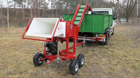 Besuchen Sie auch unseren neuen Online-Shop www.traktorshop24. com Holzhäcksler Urban SMV70 Neugerät Europäische Produktion - TOP Qualität! mit 10PS Benzin Motor und Tandem-Fahrgestell sowie Anhängekupplung! Der Holzhacker wird durch den Viertakt-Benzinmotor Briggs & Stratton VANGUARD mit einer Leistung von 10 PS angetrieben. Man kann den Motor entweder mit einem manuellen Start oder elektrischen Anlasser liefern (manueller Start wird beibehalten). Die Leistung wird vom Motor durch Keilriemen auf das Getriebe mit Ölfüllung übertragen, das den Hackvorgang vorantreibt. Die Holzhackmesser werden selbstständig durch das Einbringen der Zweige in Gang gebracht. Nach dem Hacken gelangt das Hackgut in Netzsäcke, die an einem Abfüllgerät befestigt werden. Der Holzhacker SMV70 verfügt über eine Doppelvorrichtung für Netzsäcke. Die Doppelvorrichtung erspart Ihnen Zeit. Sie müssen lediglich das Ventil umsetzen, damit das Hackgut in den zweiten leeren Sack gelang. Während dessen lösen Sie den ersten vollen und befestigen einen neuen leeren Sack . Bereits binnen 30 Sekunden lässt sich ein Sack einfüllen. Zum Holzhacker liefern wir Ihnen Netzsäcke der Größe 57 x 104 cm. Beim Kauf unseres Holzhackers erhalten Sie 50 Netzsäcke kostenfrei. Die Pendelachsen Der Holzhacker SMV70 verfügt über ein Geländefahrgestell mit Pendelachsen, dank denen er ganz einfach verschiedene Hürden überwindet. Vorne am Fahrgestell gibt es einen Einziehfahrwerk und hinten ein verstellbares Bein. Der Schwerpunkt befindet sich gleichmäβig vor der Achse. Der Holzhacker wird über eine Kugelkopfkupplung (50 mm) angeschlossen. An den Holzhacker können weitere Anhänger über einen Metallbolzen oder eine Kugelkopfkupplung (50 mm) befestigt werden. Trichter Der Trichter des Holzhackers ist lang genug, um die Sicherheit des Bedieners zu gewährleisten und verfügt über einen horizontalen Boden für die zuverlässige Verarbeitung der Zweige bei niedrigen Drehzahlen, – (im Vergleich mit den Umdrehungen des Holzhackers TR70 ist es etwa die Hälfte). Der Horizontaltrichter erleichtert das Einbringen langern Zweigen im Vergleich zu eindem vertikalen oder geneigten Trichter. Überlastschutz Einen reibungslosen Arbeitsvorgang gegen Überlastung sichern Tellerfedern im Getriebe des Dreharms. Damit wird der Keilriemen gespannt. Beim Einziehen zu dicker Zweige kommt es zur Kompression von Druckfedern, daraufhin zu einem kurzen Riemenschlupf und zum Anhalten des Motors. Wenn dies geschieht, bleiben die Holzhackermesser gleichmäßig in den Zweigen verkantet und man kann sie nicht aus dem Trichter entfernen. Zu ihrer Entnahme dient der Hebel, der sich an der Getriebeeingangswelle befindet. Dieser wird zusammen mit dem Holzhacker geliefert. Der Zweig lockert sich durch das Drehen des Hebels im Uhrzeigersinn. Die Hackvorrichtung Das Prinzip zweier Gegenschneiden garantiert ein optimales Hackergebnis. Das Teilkreisdurchmesser ist 150 mm lang und der Abstand zwischen den Wellen beträgt 70 mm. Auf jeder Schneide befinden sich die mit zwei Schrauben befestigten Messer, die aus einem hochwertigen Werkzeugstahl gefertigt werden. Die Hackmesser sind einfach zu montieren und können wiederholt geschliffen werden. Der Abstand der Messerklingen beträgt max. 0,2 mm. Am Messer ist es möglich, bis zu 4 mm abzuschleifen. Abhängig vom Holzzustand werden nach jedem Schleifen 1000 bis 5000 Netzsäcke der Hackschnitzel verbraucht. Die Messer zerkleinern auch starke Äste mit hohem Grünmasseanteil. Technische Daten: Abmessungen: Länge ohne die Deichsel: 2120mm Länge inkl. der Deichsel: 2950mm Breite: 1400mm Höhe: 1740mm Eingangsöffnung des Trichters: 630 x 630 mm Öffnung zur Hackvorrichtung: 200 x 200 mm Gewicht: 380 kg Max. Motorleistung: 7,5 kW (10 hp) Kraftstoff: Super Benzin Max. Umdrehungen der Hackvorrichtung: 200 U/min Anzahl der Holzhackermesser: 6 Reifengröβe: 16 x 6.50 – 8 Max. gemessene Leistung: 4 m3 / Std. Hackschnitzelgröße (nicht einstellbar): 6 bis 13 cm Max. Durchmesser eingezogener Äste: weiches frisches Holz (Fichte, Kiefer) 80 mm hartes frisches Holz (Eiche, Hainbuche) 65 mm hartes trockenes Holz (Eiche, Hainbuche) 50 mm Das gehäckselte Holz ist ideal für Heizzwecke und wird sofort in Netze abgefüllt. Auswurf von Holz in der Stärke von 6 bis 13cm! Unterschiedliche Optionen lieferbar: - Doppelvorrichtung für Netzsäcke (im Preis enthalten) - Vorrichtung für Big-Bags (gegen Aufpreis) - mit Seitenförderband 210cm (gegen Aufpreis) - mit Seitenförderband 260cm (gegen Aufpreis) - mit Heckförderband 260cm (gegen Aufpreis) diese Modelle sind auch für grösseres Holz lieferbar. Auch mit Benzin-Motor-Antrieb, mit Elektromotor und auch als Anhänger-Version! Auslieferung erfolgt im montierten Zustand. Fragen Sie nach unseren Angeboten! Wir haben viele Häcksler auf Lager sofort zum mitnehmen! Lieferung durch unsere Spedition für 199,00 Euro deutschlandweit möglich, Lieferung innerhalb Europa auf Anfrage. Gerate sind ständig auf Lager. Verkauf erfolgt an Privatkunden und Gewerbekunden. Ersatzteile sind ständig auf Lager. Weitere Informationen auf www. traktorshop24. com oder www. vemac24. com Wir haben auch Mulcher, Mähwerke, Kreiselmähwerke, Bodenumkehrfräsen, Frontlader, Heckbagger, Pflüge, Transportboxen, Palettengabeln, Anhänger... VEMAC GmbH Lange Göhren 7b 39171 Osterweddingen Tel. 039205 - 43 46 10 Fax: 039205 - 43 46 11 www.traktorshop24. com