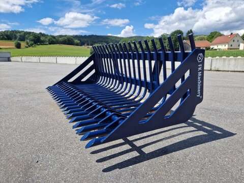 Steinsammelschaufel zum bequemen Steine sammeln mit den Frontlader und verladen auf den Kipper oder an Feldrand - Schaufelbreite 2m - Tiefe ca. 1m - Abstand zwischen den Stäben ca. 72mm - Fingerdurchmesser ca. 30mm - Gewicht ca. 311 kg Optional: - Andere Aufnahmen möglich - Andere Schaufelbreiten möglich von 1,5m bis 2,4m Lieferung möglich