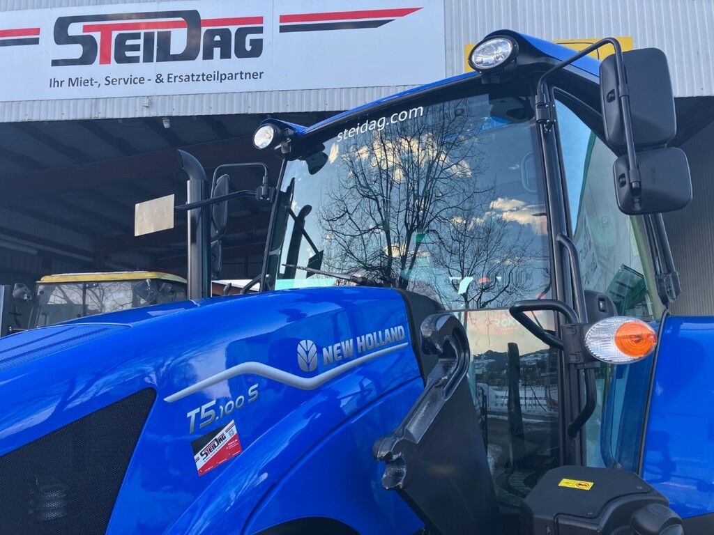 New Holland T5.100 SDer günstige MischwagentraktorGrundausrüstung:- 99 PS aus kraftvollem 4-Zylinder Motor- 12x12 Getriebe 40 km/h mit zuschaltbarem Allrad- 2 dw Steuergeräte im Heck- autom. Anhängekupplung schnell höhenverstellbar- 480er Bereifung- Zapfwelle: 540/1000/Weg- Abgas Stufe V- 64l/min Hydraulikölpumpe- Vorbereitung Frontzapfwelle- Luftfedersitz- Radio- KlimaanlageZwischenverkauf und Preisänderungen vorbehalten!, Klimaanlage:ja, Zapfwelle:540 / 1000, Getriebe:12/12 Wendegetriebe, Steuergeräte:2 DW