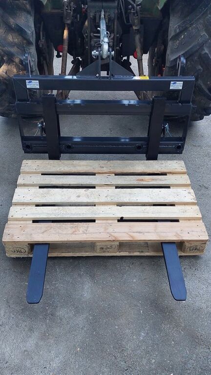 Gabelträger FEM ISO 2 mit Dreipunkt und Euro-Aufnahme - Rahmenbreite 1.2 m - für Standard Euro-Norm Anbau an Frontlader, Hoflader, Teleskoplader, Radlader - für 3-Punkt Anbau an Traktor Fronthubwerk oder Heckhubwerk Kat. 2 (auf Wunsch mit Bolzen für Kat. 1) - max. Last 2000 kg mit Gabelzinken FEM ISO 2A und Federbolzenarretierung - Querschnitt 80x40 mm - Länge 1.2 m - Marke 'SE-Material Handling' (Schweden/Deutschland) - max. Last: 2000 kg pro Gabelpaar (Lastschwerpunkt bei 50 cm vor Gabelrücken) Die gewünschte Ausführung kann nach Wunsch im Baukastensystem individuell zusammengestellt, oder später ergänzt werden: Einzelner Gabelträger / Grundrahmen / Ladungsträger ohne Gabeln Netto inkl. MwSt CHF 1000.- Gabelzinken-Paar (2 Stück), Staplergabel 80/40x1200, FEM ISO 2A Netto inkl. MwSt CHF 300.- Ballenspitz-Paar (2 Stück), Ballendorn D36 mm mit Konus M22x1.2 x 1100 mm Netto inkl. MwSt CHF 80.- - Frontladerzinken für Transport von ungewickelten Rundballen oder Quaderballen Aufsteckr, Gewicht:200
