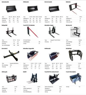 Trac lift homlokrakodók több féle méretben adapterekkel