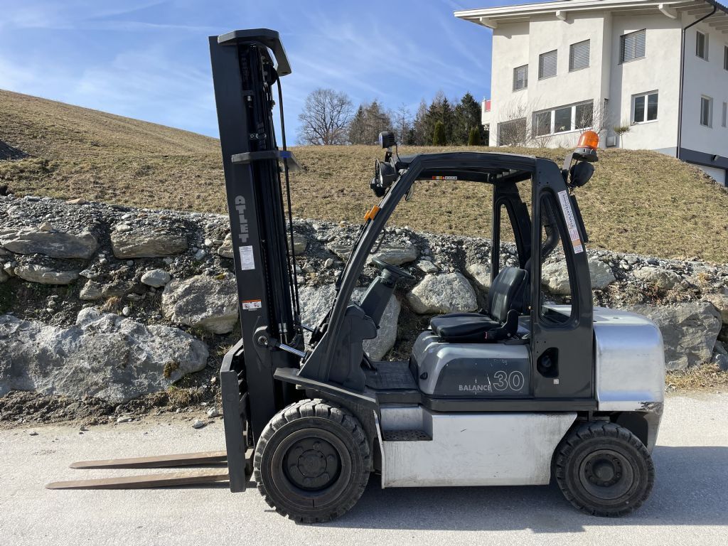Bauart: Frontstapler / Dieselstapler, Tragkraft: 3000kg, Hubhöhe: 6000mm, Bauhöhe: 2850mm, Freihub: 2100mm, Gabellänge: 1200mm, Bereifung vorne: Superelastik Einfach , Bereifung hinten: Superelastik Einfach , Anbaugeräte: Seitenschieber, Zinkenverstellgerät, Sonderausstattung: 3. Ventil, 4. Ventil, Arbeitsscheinwerfer hinten, Arbeitsscheinwerfer vorn, Dachabdeckung, Beschreibung: 03.26 /C17900