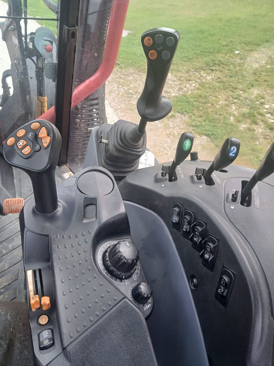 3 mech. Hecksteuergerät hinten und 2 mech. Mittensteuergeräte vorne mit Kreuzhebel mechanisch,