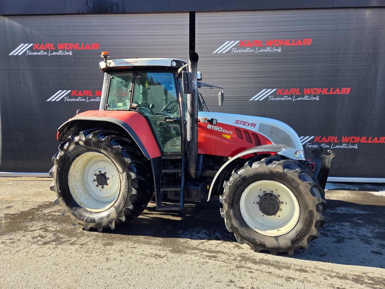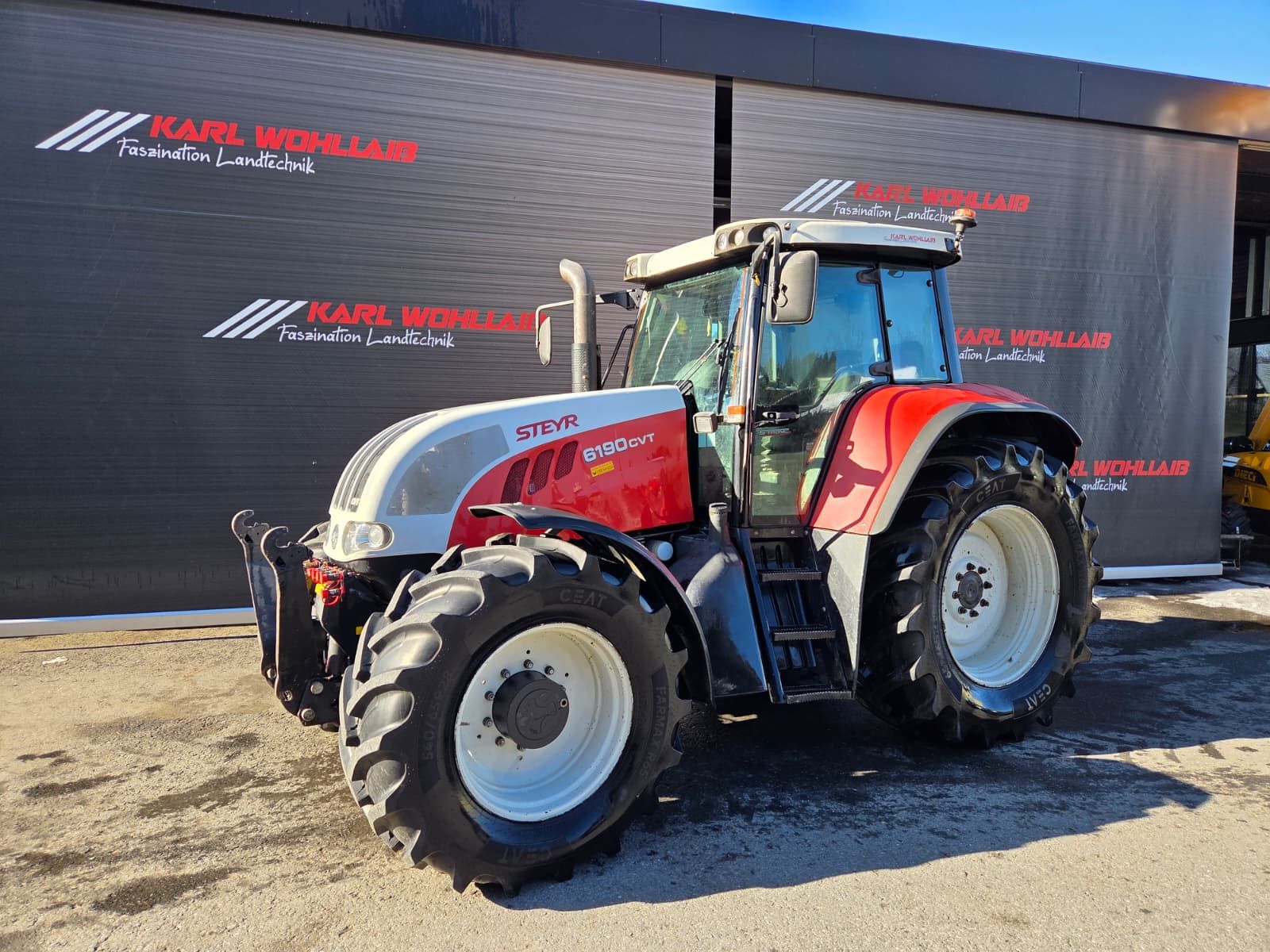 Steyr 6190 CVT - Baujahr 2003 - 10254 Betriebsstunden - 190 PS - Profimodell - 50km/h stufenlos - 5DW Steuergerät am Heck - Load-Sensing am Heck - Druckloser Rücklauf - gefederte und gebremste Vorderachse - Klimaanlage - Druckluftanlage mit Lufttrockner - Streckbremse - Superkomfortsitz, Radio (CD-Player) - Frontscheibe und Heckscheibe beheizt, Heckscheibe mit Wisch- u. Waschanlage - Teleskopspiegel beheizt - Frontzapfwelle und Fronthydraulik - Hub- u. Druckfunktion f. Heckhydraulik - 4DW Anschlüsse vorne - Motorstaubremse - Rundumleuchte links und rechts - elektrischer Batterie-Hauptschalter - Vor- u. Retourtaster neben Joy-Stick - Bereifung vorne 540/65R28 Ceat - Bereifung hinten 650/65R38 Ceat - Ackerschiene - Anhängevorrichtung automatisch höhenverstellbar - K80 Anhängevorrichtung - Oberlenker hinten und vorne