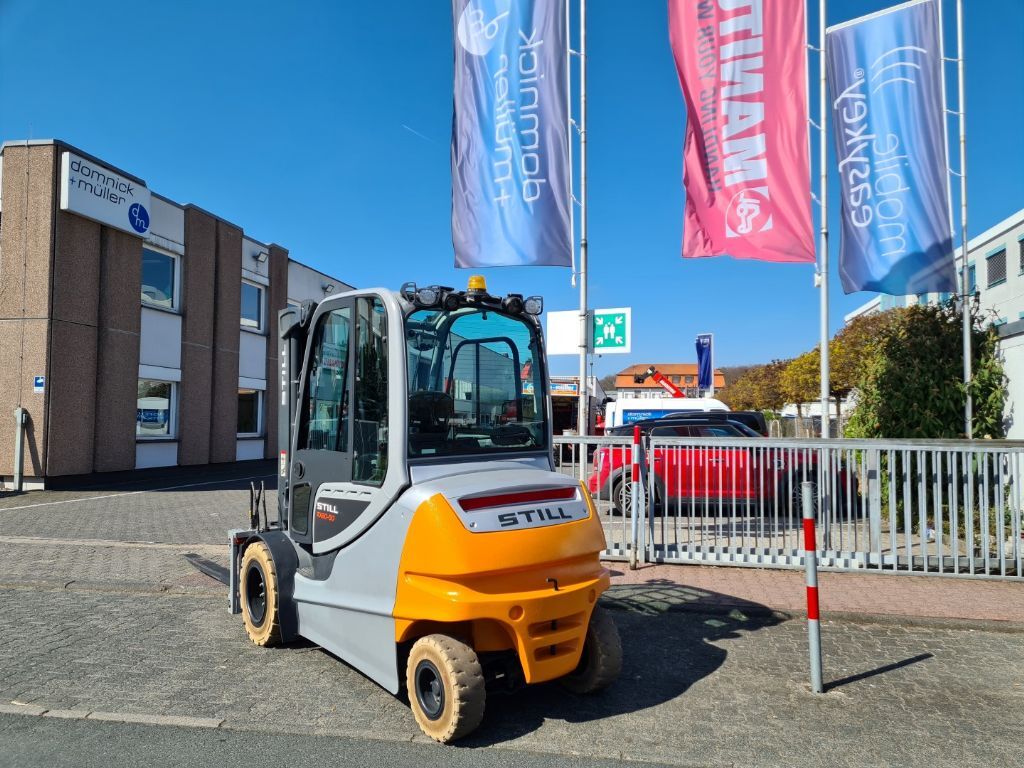 Bauart: Frontstapler / Elektro 4 Rad-Stapler, Tragkraft: 5000kg, Hubhöhe: 4700mm, Bauhöhe: 2340mm, Freihub: 1500mm, Gabellänge: 2400mm, Batterie: Still Bj. 2019 80V 930Ah Zustand: 80 - 100%, Bereifung vorne: Non Marking Einfach 80 - 100% , Bereifung hinten: Non Marking Einfach 80 - 100% , Anbaugeräte: Seitenschieber, Zinkenverstellgerät, Sonderausstattung: 3. Ventil, 4. Ventil,