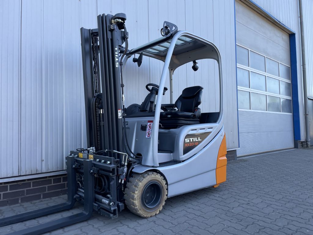 Bauart: Frontstapler / Elektro 3 Rad-Stapler, Tragkraft: 1800kg, Hubhöhe: 4470mm, Bauhöhe: 2060mm, Freihub: 1470mm, Gabellänge: 1200mm, Batterie: überholt und geprüft PzS Bj. 2017 48V 625Ah , Bereifung vorne: Non Marking Einfach 80 - 100% , Bereifung hinten: Non Marking Zwilling Neu , Anbaugeräte: Seitenschieber, Zinkenverstellgerät, Sonderausstattung: 3. Ventil, 4. Ventil, Arbeitsscheinwerfer hinten, Arbeitsscheinwerfer vorn, Dachabdeckung, Safety Light, Beschreibung: Überholt, gewartet und geprüft gemäß FEM 4.004 (UVV). Completely repaired, serviced and checked.