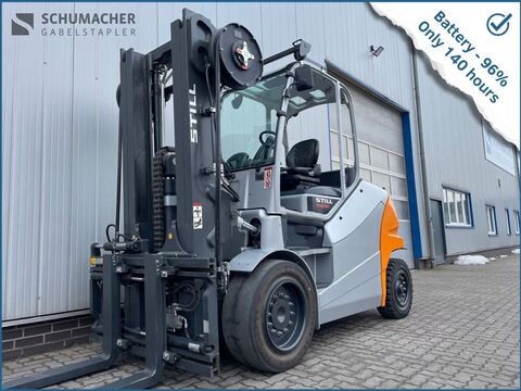 Bauart: Frontstapler / Elektro 4 Rad-Stapler, Tragkraft: 2500kg, Hubhöhe: 5390mm, Bauhöhe: 2475mm, Freihub: 1745mm, Gabellänge: 1200mm, Batterie: PzS Bj. 2018 80V 560Ah , Bereifung vorne: Non Marking Einfach , Bereifung hinten: Non Marking Einfach , Anbaugeräte: Seitenschieber, Zinkenverstellgerät, Sonderausstattung: 3. Ventil, 4. Ventil, Arbeitsscheinwerfer hinten, Arbeitsscheinwerfer vorn, Heizung, Vollkabine, Safety Light, Nicht-kreidende Bereifung, Joystick, Rundumleuchte, Beschreibung: Guter einsatzbereiter Zustand, wie vom Vorbesitzer zurück // good working condition, as back from the pre-owner