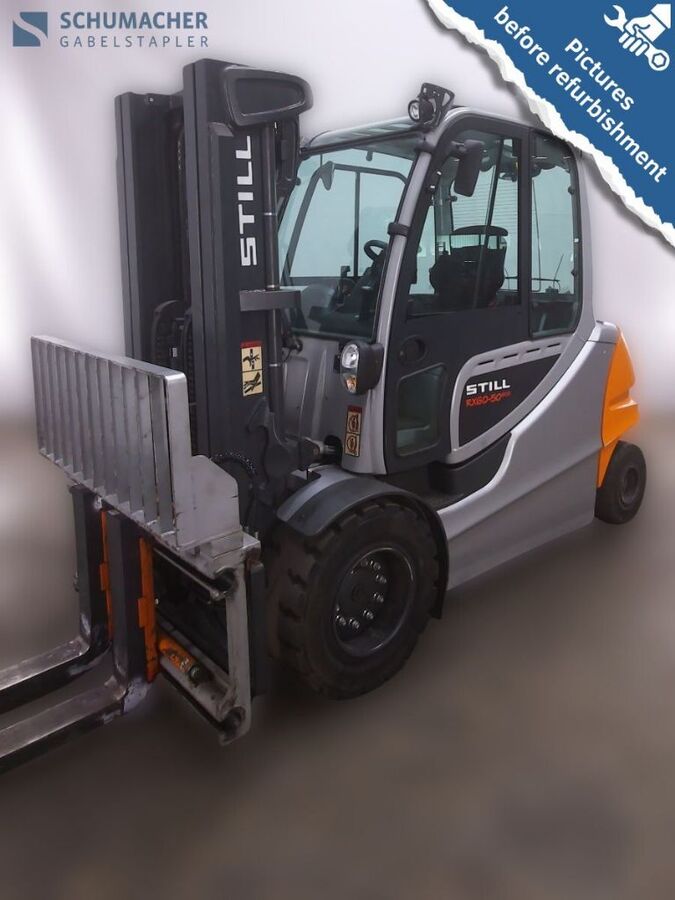 Bauart: Frontstapler / Elektro 4 Rad-Stapler, Tragkraft: 5000kg, Hubhöhe: 4030mm, Bauhöhe: 2250mm, Freihub: 1290mm, Gabellänge: 1200mm, Batterie: PzS Bj. 2016 80V 870Ah , Bereifung vorne: Superelastik Einfach , Bereifung hinten: Superelastik Einfach , Anbaugeräte: Seitenschieber, Zinkenverstellgerät, Sonderausstattung: 3. Ventil, 4. Ventil, Arbeitsscheinwerfer hinten, Arbeitsscheinwerfer vorn, Heizung, STVZO, Vollkabine, Safety Light, Rundumleuchte, Beschreibung: Guter einsatzbereiter Zustand, wie vom Vorbesitzer zurück // good working condition, as back from the pre-owner
