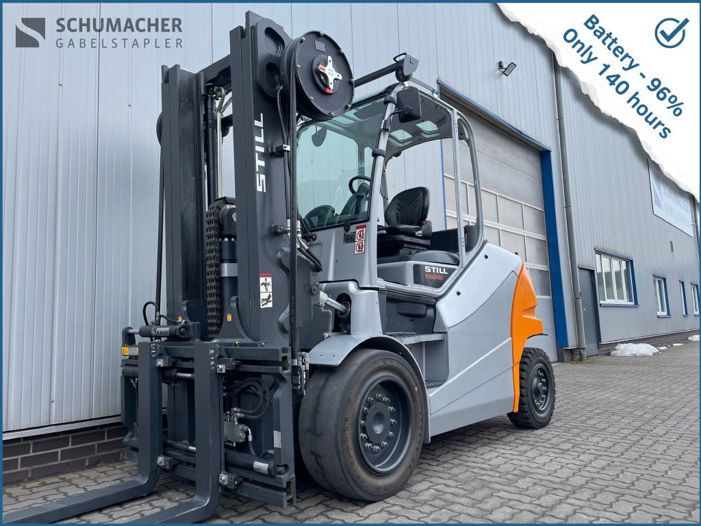 Bauart: Frontstapler / Elektro 4 Rad-Stapler, Tragkraft: 6000kg, Hubhöhe: 4770mm, Bauhöhe: 2710mm, Freihub: 1505mm, Gabellänge: 1500mm, Batterie: 96% Restkapazität PzS Bj. 2019 80V 1240Ah Zustand: 80 - 100%, Bereifung vorne: Superelastik Einfach 80 - 100% , Bereifung hinten: Superelastik Einfach 80 - 100% , Anbaugeräte: Seitenschieber, Zinkenverstellgerät, Sonderausstattung: 3. Ventil, 4. Ventil, Arbeitsscheinwerfer hinten, Arbeitsscheinwerfer vorn, Heizung, Vollkabine, Safety Light, Sonderausstattungbeschreibung: Minihebel mit Armlehne Beschreibung: Überholt, gewartet und geprüft gemäß FEM 4.004 (UVV). Completely repaired, serviced and checked.