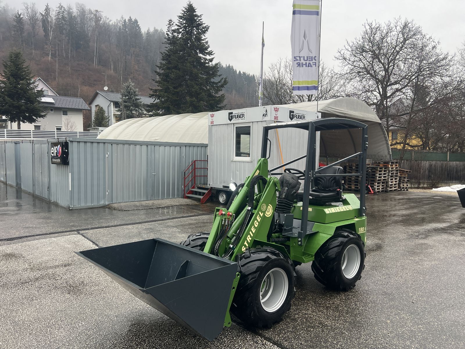 STRIEGEL Hoflader UNI 180 YA made in Germany mit Schaufel 1,35m * Hubkraft: 2730 kg * Kipplast gerade: 920 kg * Gewicht m.. Schaufel: 1690 kg * Hubhöhe: Drehpunkt: 2940 mm, Schaufel ausgekippt: 2145 mm * Maschinenbreite: 1,31 m * 3 Zylinder Yanmar Dieselmotor * Allradachsen selbstsperrend * Arbeitshydraulik: Fördermenge 33 Liter/min * hydrostatische Fahrhydraulik - Kardanwelle * Euronormaufnahme mit hydraulischer Geräteverriegelung * Axial Kolben-Verstellpumpe mit Ölkühler 100 Liter min Leistung Sauer Danfoss-System * EURO-Aufnahme hydraulisch verriegelbar * Abgasnorm EURO 5 * LED vorne und hinten * Selbstbergekupplung * Bereifung: 31x15,5 - 15 EM BKT * SAMT 1,35 m Schaufel Das Gerät kann jederzeit bei der Firma Gruber GmbH besichtigt werden. Abholung/Zustellung jederzeit möglich. Alle Angaben ohne Gewähr.