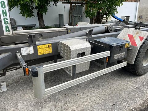 Stronga Hakenlift ohne Heckcontainer Verkauf im Kundenauftrag Baujahr: 2023 zul. Gesamtgewicht: 22.000 kg bei 40 km/h Hebekapazität: 21.000 kg zul. Stützlast: 4000 kg Eigengewicht: ca. 5.500 kg Parabelfedern: 24.000 kg Tragfähig Achsen BPW 150 x 150 Zugkraftbedarf: 140 PS Nachlauflenkachse BPW 150x150mm - Bremse 410x180 Hydr. Zwangslenkung Load Sensing Quick Loada Ventil Luftfahrwerk K80 Hinten zusätzl. Steuergeräte Bereifung: 650/50R22,5 163 D Nokian ca.75% Bei Interesse bitte Bachmaier Franz anrufen: 0-1-5-1-2-0-2-7-9-4-1-1