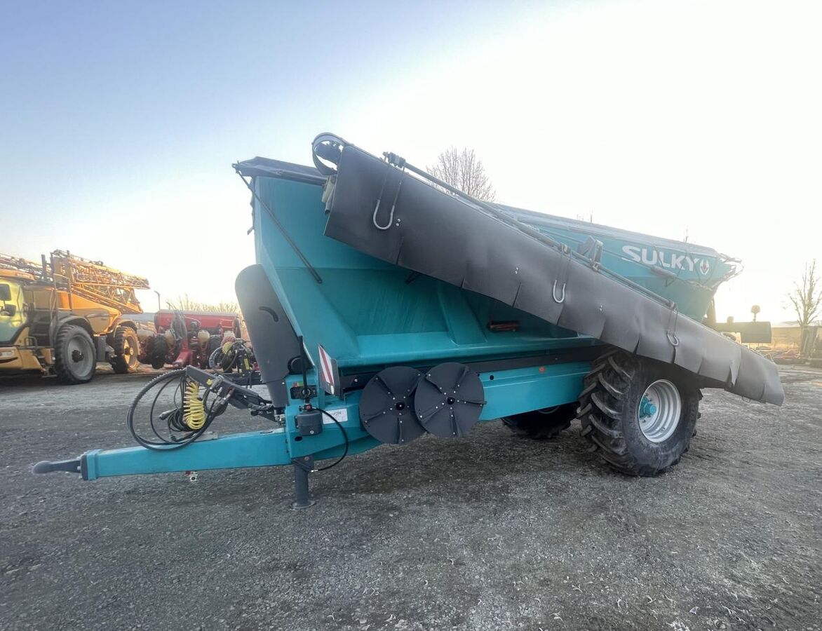 Beleuchtung/Warntafeln, Plane, ISOBUS, elektronische Füllstandsanzeige, automatische GPS Teilbreitenschaltung (Section Control), Grenzstreuschirm, Grenzstreuscheibe, Schmutzfänger / Kotflügel ________ Gezogener Streuer, K80 Anhängung, DL Bremse, 13000l Behälter,