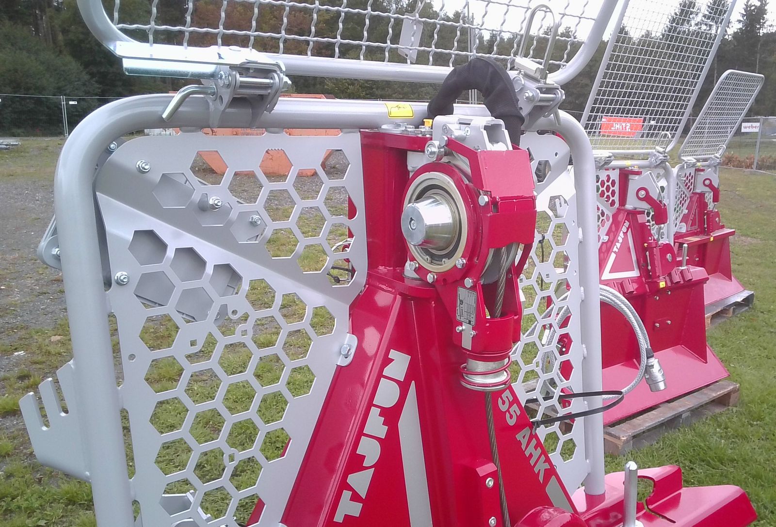 Tajfun Forstseilwinde EGV 55 AHK SG 1,80M hydraulische Seilwinde mit Endabschalter, regulierbarer Seilausstoß, 1800mm Schildbreite, inkl. Steuerkonsole, Anhängervorrichtung, unterer Seilrolle, klappbares Schutzgitter, Sappiehalter, Motorsägenhalter, Staufächer für Ketten usw., Dreipunktbolzen, im Angebot enthalten sind 2 Stk. Seilgleiter, ein Seilendstück, sowie SOMA D-1 F10 ET Profifunk inkl. Bedienungsanleitung und 80 Meter Stahlseil hochverdichtet mit 10mm Durchmesser 2060N/mm Bruchfestigkeit.