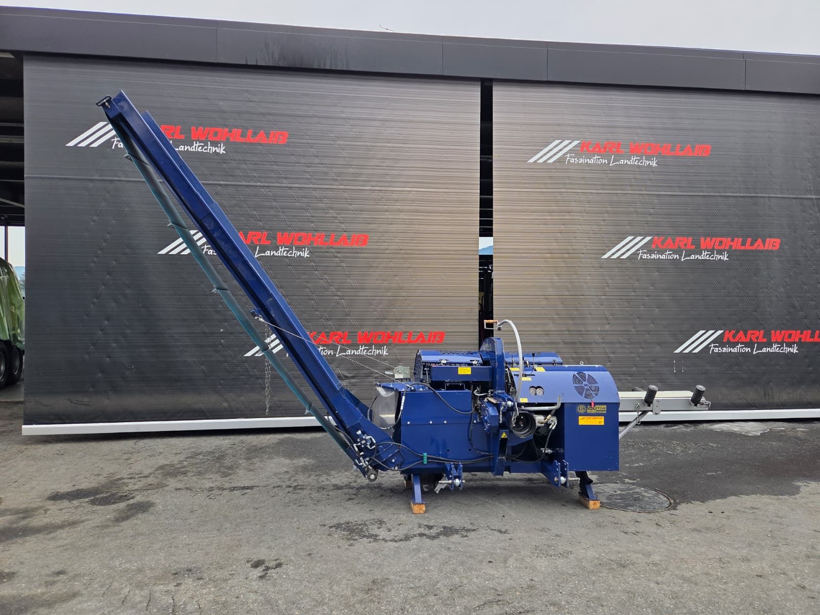 Tajfun RCA 380 - Baujahr 2007 - 7x Ersatzkette - 8 fach Spaltkeil - 6 fach Spaltkeil - neues Förderband - Hebetisch DM 1511 (Baujahr 2007) zum heben und fördern von Stämmen - Schnittdurchmesser 10-38cm - Schnittlänge 25-50cm - Hydraulischer Ausschub des Förderbandes