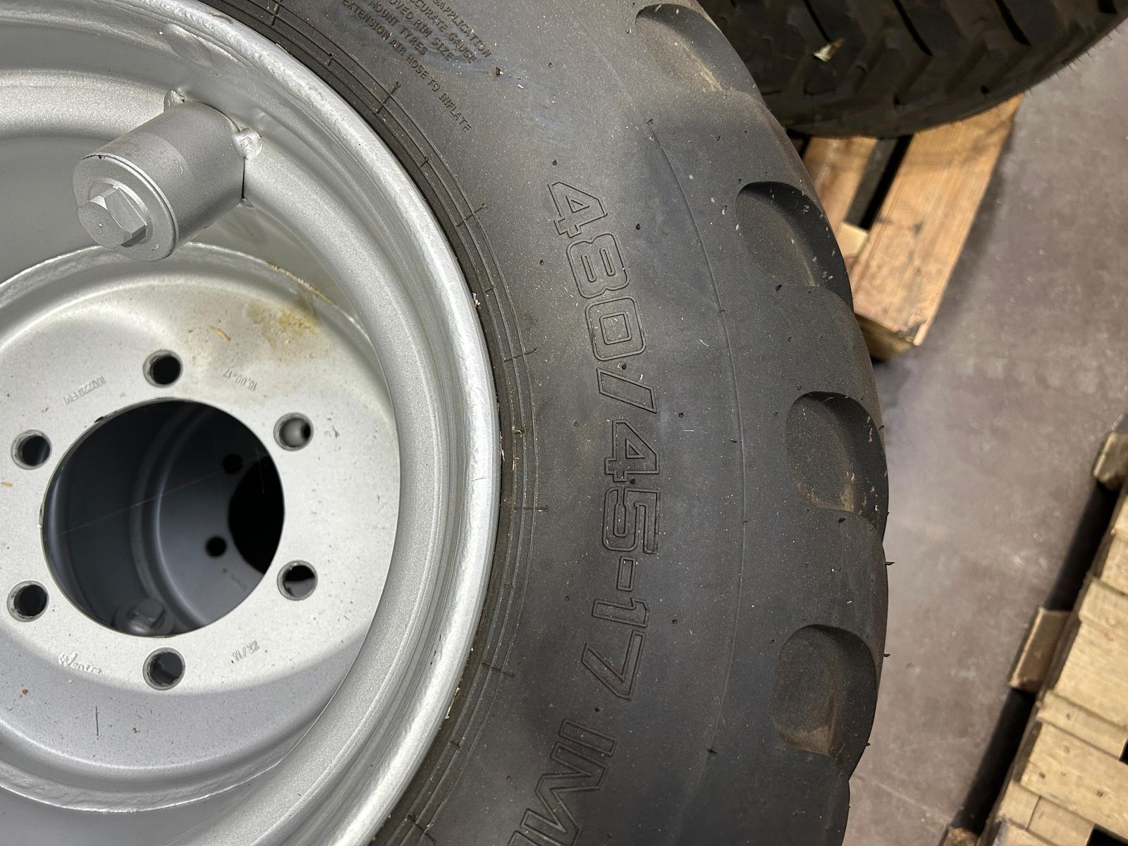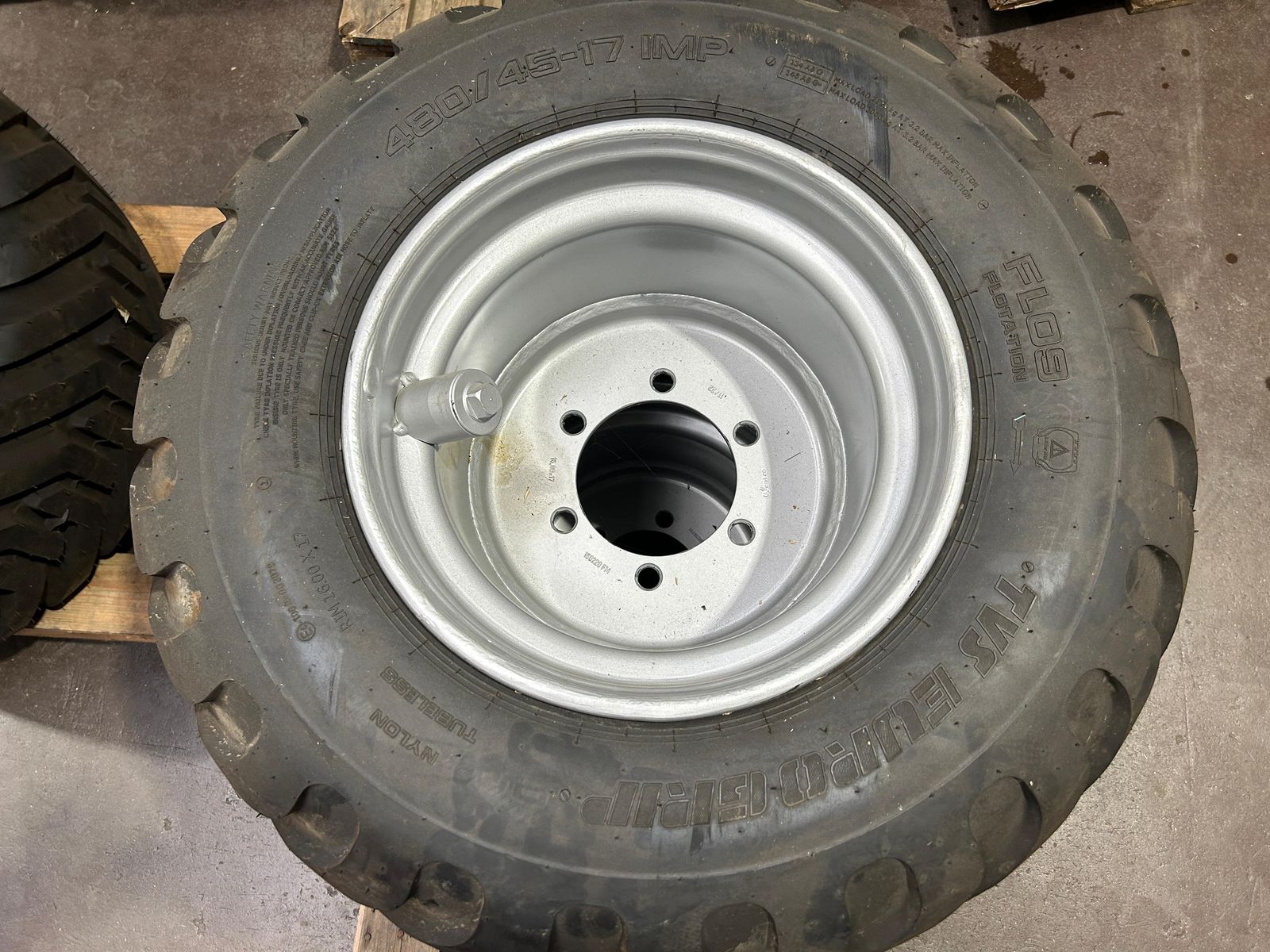ganz leicht gebrauchte Anhängerräder der Marke TVS für 480/45-17 auf 6-Loch Forstfelgen mit ET-35 Diese und weitere sind in Fischbach am Lager Ihr SOMA-Verkaufsteam