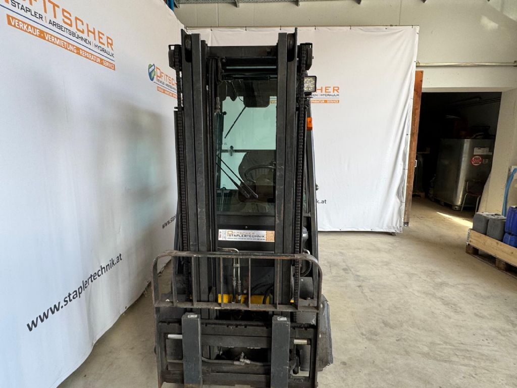 Bauart: Frontstapler / Elektro 4 Rad-Stapler, Tragkraft: 2000kg, Hubhöhe: 3300mm, Bauhöhe: 2110mm, Freihub: 150mm, Gabellänge: 1150mm, Batterie: Bj. 2015 48V 750Ah , Anbaugeräte: Seitenschieber, Sonderausstattung: 3. Ventil, Arbeitsscheinwerfer hinten, Arbeitsscheinwerfer vorn, Dachabdeckung, Frontscheibe, Heizung, Lastschutzgitter, Vollkabine, Vollfreihub, Scheibenwischer, Sitz, Sonderausstattungbeschreibung: BLINKER R/L Beschreibung: Gesamt-Betriebsstunden: 10.321 h Davon eingeschaltet (aktiv): 7.621 h Davon mit Last (Ware gehoben / gestapelt): 6.723 h