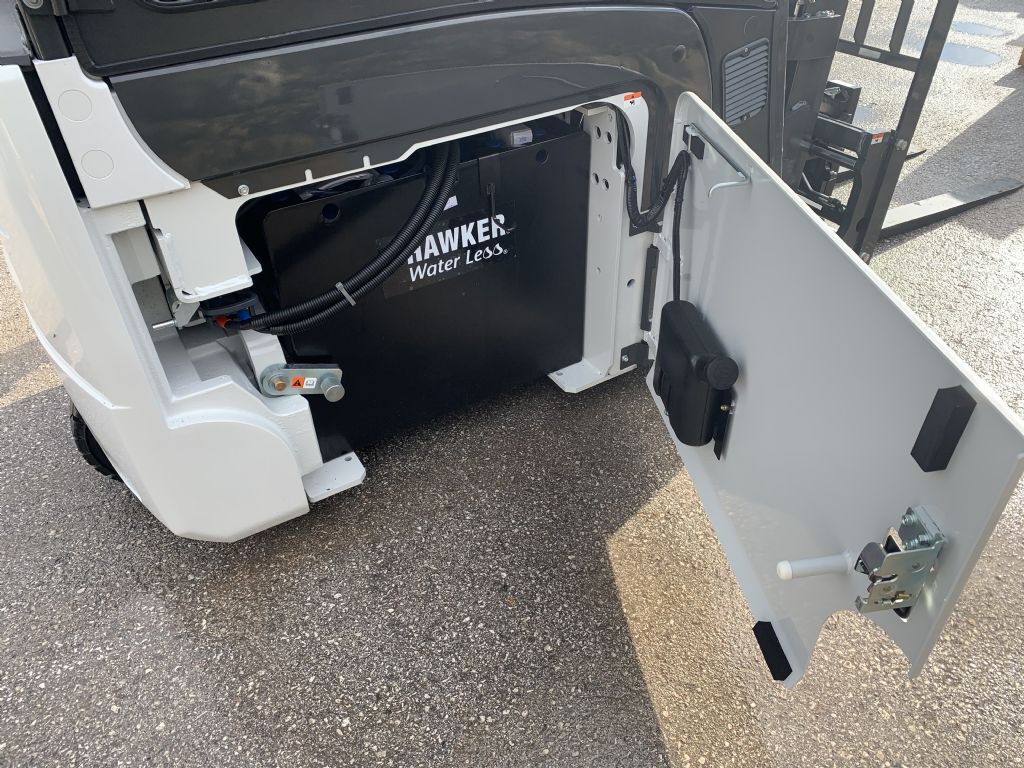 Bauart: Frontstapler / Elektro 3 Rad-Stapler, Tragkraft: 2000kg, Hubhöhe: 4750mm, Bauhöhe: 2110mm, Freihub: 1200mm, Gabellänge: 1200mm, Batterie: Hawker Bj. 2021 48V 750Ah , Bereifung vorne: Superelastik Einfach , Bereifung hinten: Superelastik Zwilling , Anbaugeräte: Seitenschieber, Zinkenverstellgerät, Sonderausstattung: 3. Ventil, 4. Ventil, Arbeitsscheinwerfer hinten, Arbeitsscheinwerfer vorn, Heizung, Lastschutzgitter, Vollkabine,