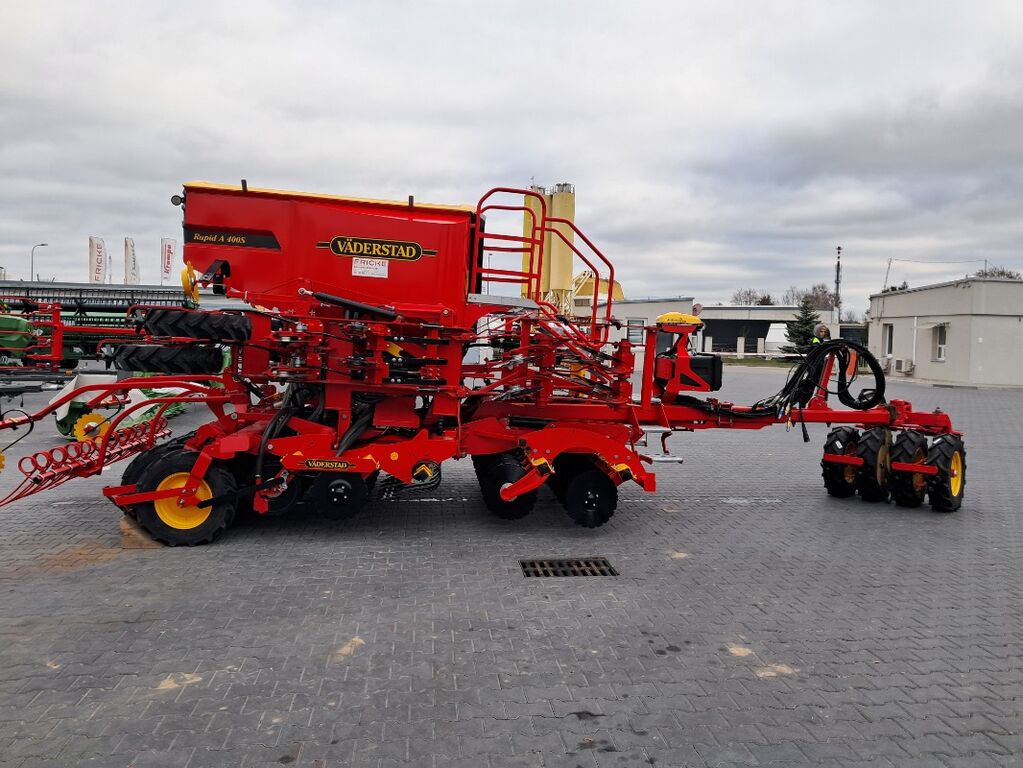 **Väderstad Rapid RDA 400 S (2023)** Specyfikacje: - System wysiewu: Hydrauliczny - Szerokość robocza (m): 4,0 - Szerokość transportowa (m): 3,0 - Waga podstawowa (kg): 5.200 - Pojemność zbiornika nasion (l): 2.900 - Liczba redlic wysiewowych: 32 - Rozstaw nasion (mm): 125 - Ciśnienie na redlicy min/max (kg): 117/255 - Średnica tarczy wysiewowej (mm): 410 - Wymagania hydrauliczne: 3-4 DA + 1 FR - Minimalne wymagania mocy (KM): 130 - Wydajność oleju dla wentylatora hydraulicznego (l/min): 40 >Uwaga: O ile nie zostało to wyraźnie wskazane w treści oferty, widoczne dodatkilub akcesoria nie są wliczone w cenę oferty. Na życzenie chętnie przedstawimyodpowiednią ofertę. >Wszystkieinformacje bez gwarancji. **Väderstad Rapid RDA 400 S (2023)** Specifications: - Metering system: Hydraulic - Working width (m): 4.0 - Transport width (m): 3.0 - Basic weight (kg): 5,200 - Volume seed hopper (l): 2,900 - Number of seed coulters: 32 - Row spacing seed (mm): 125 - Seed coulter pressure min/max (kg): 117/255 - Seed disc diameter (mm): 410 - Hydraulic requirement: 3-4 DA + 1 FR - Draught requirement from (hp): 130 - Oil capacity for hydraulic fan (l/min): 40 >Unlessexplicitly stated in the offer text, visible extras or accessories are notincluded in the offer price. We would be pleased to include a suitable offerfor them upon request. >Allinformation provided without guarantee.