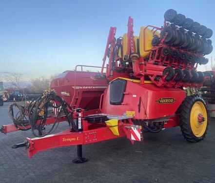 TEMPO TPF 8 (0010) gebr. Väderstad Sämaschine (0020) Untenanhängung K80, hydr. Gebläse, (0030) 75cm Reihenabstand, (0040) hydr. Fahrwerk, hydr. klappbar, (0050) 2 Kreis Druckluftbremsanlage, (0060) hydraulisch klappbare Spuranreißer, (0070) Fahrgasenschaltung, GPS, Radar, (0080) Direktsaatausstattung, Andruckrollen, (0090) Doppelscheibenschar als Säschar, (0100) Mikrogranulatstreuer, (0110) Befülltrichter mit Befüllschnecke, (0120) ISOBUS mit Apple IPAD, (0130) Beleuchtungsanlage, Warntafeln, (0140) Bereifung : 11.5/80 - 15.3