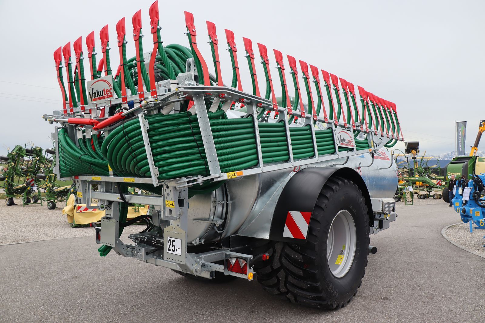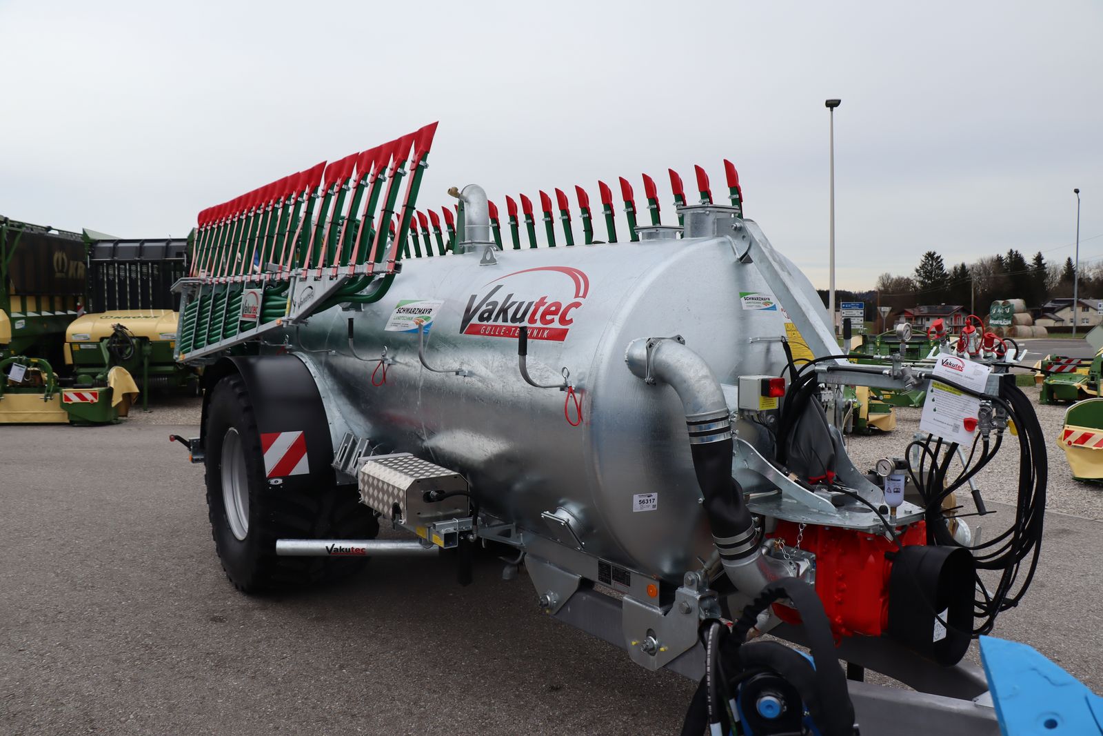 Nr. 56317 Pumpfass - Vorführmaschine mit 440 Fuhren - mit 9200lt. verzinkten Behälter - mit 1.600mm Fassdurchmesser - mit 1.000mm ausschwenkbaren Heckdeckel - mit Schwallwand - mit 200mm Dom - mit Schlauchablage - mit Füllstandanzeige - mit VX186-184 Quick Service Drehkolbenpumpe - mit 4.270 l/min Förderleistung bei 5 Bar und 600 U/min - mit Untenanhängung mit Y-Deichsel - mit hydraulischen Stützfuß - mit Beleuchtung - mit Sauganschluss 6" links vorne mit Schnellkuppler - mit 3m 6" Saugrohr und 45° Bogen - mit 2m 6" Saugschlauch - mit 4" Ausbringanschluss HK 108MT ohne Verteiler Zusatzausrüstung: - mit 2-Leiter DL- Bremsanlage und ALB-Regler - mit 25hm/h Paket - mit Einzelgenehmigung Überbreite für Österreich - mit Radkästen - mit gekröpfter Achse und Spur 1800mm - mit 850/50R30,5 Flotation Trac Bereifung - mit Kunststoffkotflügeln - mit Achsvorbereitung für Reifendruckregelanlage - mit K80 Kugelkopfkupplung mit 3 to. Stützlast - mit Federpaket mechanisch für Untenanhänung - mit Injektorsystem für VX 186-184/30 - mit Endabschaltung automatisch pneumatisch für Sauganschluss - mit Quick Service Plus Schwenkvorrichtung für VX Pumpe - mit Statusanzeige Dreiwegehahn (sichtbar von der Traktorkabine aus) - mit WW-Gelenkwelle für VX 186-184 - mit Schlepp-SCHUH-Vorbereitung - mit Vario-Flex + 12/48 Schlepp-SCHUH-Verteiler mit Swing-up Gestänge 12m - mit 1 EXACUT ECQ Verteilkopf, mit 48 Abgängen - mit 25cm Abstand der Schleppschuhe - mit Montage Schlepp-Schuhverteiler - mit elektrohydraulischer Joystick Steuerung mit 3 DW Funktionen - mit Load-Sensing Hydraulik zusätzlich vereinbart: - mit Fasszählwerk Das Verkaufsteam der Fa. Schwarzmayr zeigt Ihnen das Gerät/Maschine gerne und bittet um Terminabsprache zwecks Besichtigung bei uns am Betrieb. Wir sind auch samstags bis 12:00 Uhr für euch da! Gerne unterbreiten wir auch ein Angebot per Mail. Wir freuen uns auf einen Besuch oder auf eine Anfrage.