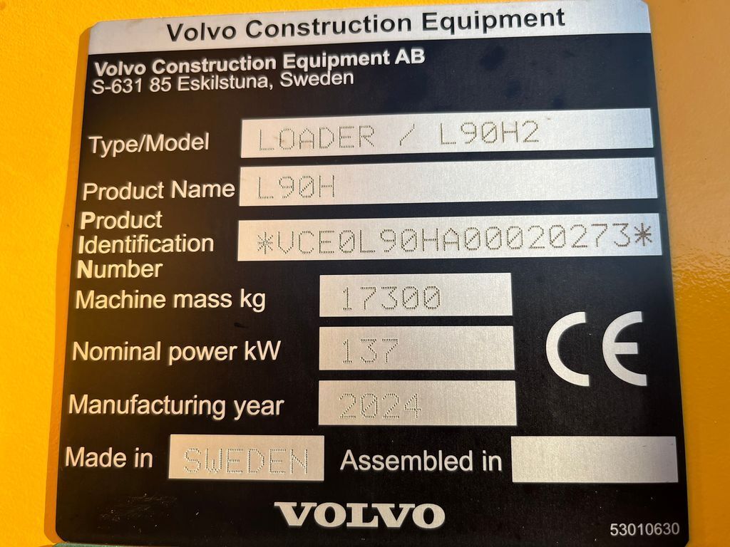 == Flere oplysninger (DK) == Hurtigskift: Ja Volvo Er til salg: Til salg nu Volvo L 90 H2 AGRICUTURE med DK-Pakke og LANG-BOM samt ekstra vægt pakke i bag for stor læssehøjde. Co-Pilot med bak karmara og forberedt til Volvo vejesystem. Dansk standard udstyr på så der er ikke noget som mangler den har alt i udstyr. Den har hurtigskifte og 3die funktions hydraulik samt BSS. Vendbar ventilatorvinge. Centralsmørring. Den har klima anlæg og tryk kabine samt justerbar rat og luksus-luftsæde med varme og køl og CDC styrrings armlæn. Der er Elektra Servo Steering Sticks. Stor LED PowerPackage-lyspakke og sidemarkeringslys. 240V motorvarmer. Den har også Lock-up på. Hjul monteringen er Michelin 750/65R26 MEGA X BIB traktor hjul. BEMÆRK MED GARANTI FRA VOLVO FREM TIL DEN 31.1.2027 Prisen på den er uden skovl men vi hjælper gerne med en super skarp pris på de redskaber som du ønsker og vi har nye JST redskaber på laver til omgåenden levering. Den kan også lejes for en periode også med forkøbsret det er billiger end du regner med ring og forhør nærmere om dette. Vi hjælper gerne med en finansiering hvis det ønskes og vi tager meget gerne dine brugte traktorer i bytte og Køb-Salg-Bytte-Udlejning se altid over 100 brugte traktorer til salg på vores webside limas.dk We live in Denmark only 78km from the Danish-German border crossing in Flensburg and only 38km from Billund Airport - BLL. You are very welcome to come and visit us then you can see the machine physically for yourself. If you wish we will be happy to send a lot of pictures and video of it on Whats-App or email